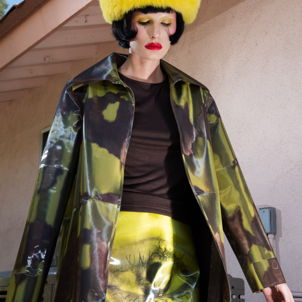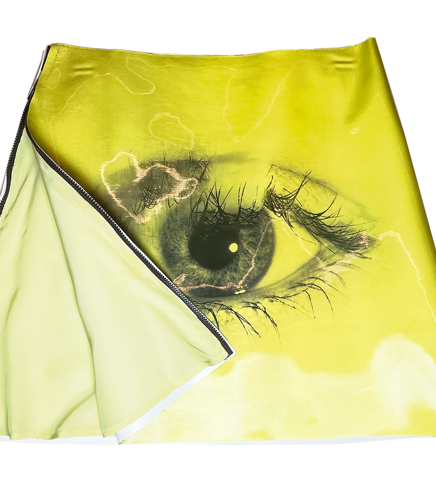 Holographic Colour-Changing Mini Skirt that changes pattern as you move. Handmade in Los Angeles.