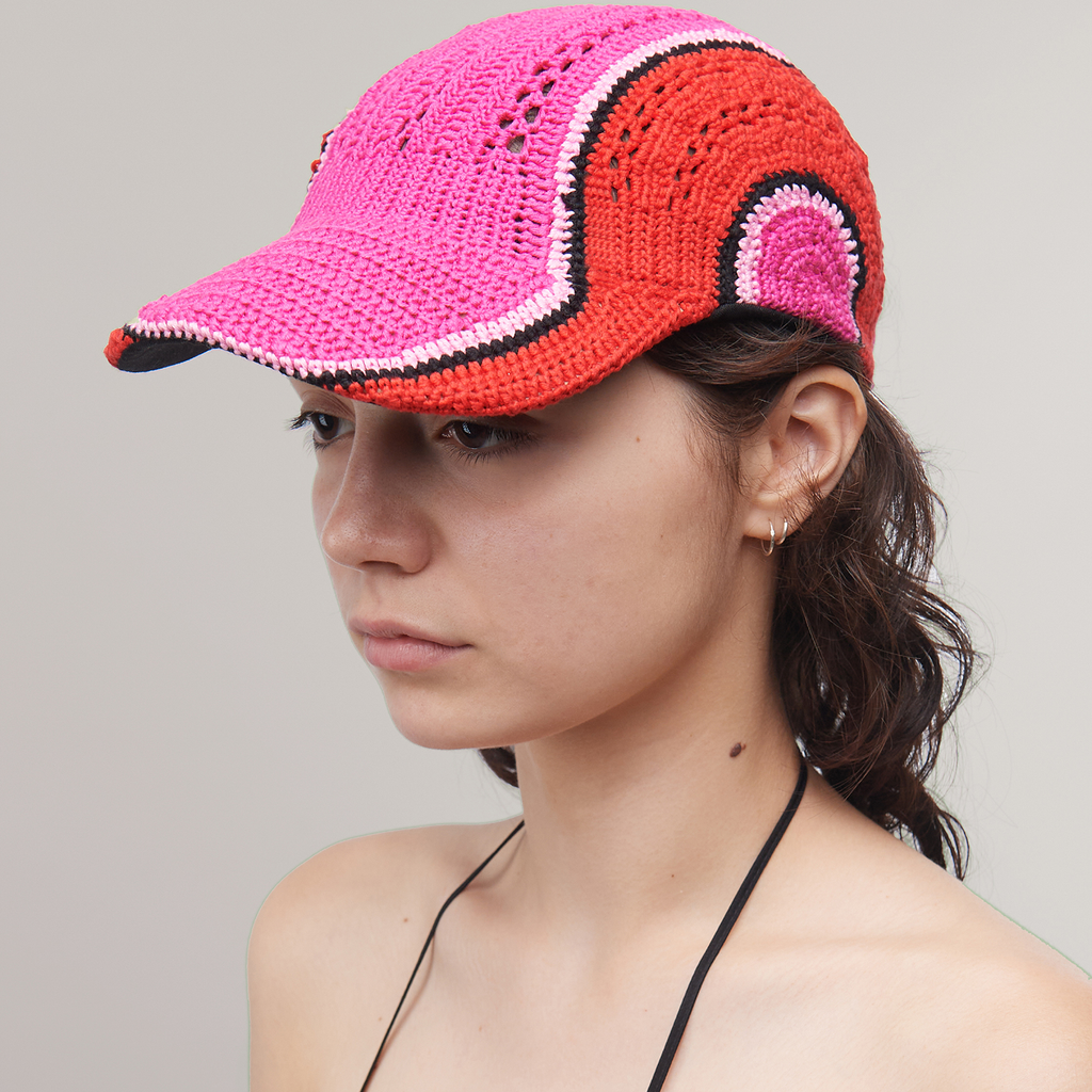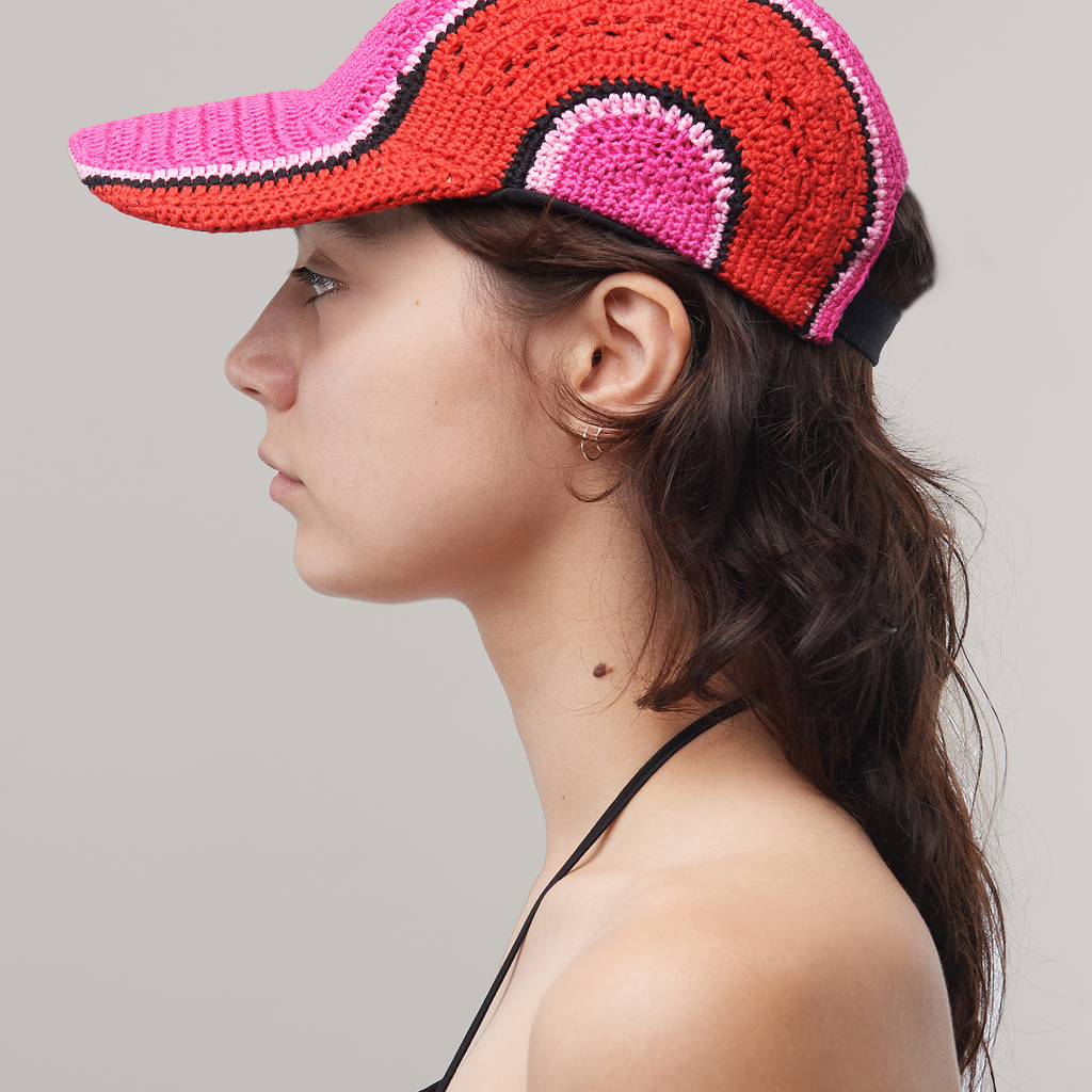 Handmade crochet baseball cap. Fit is adjustable on the back with a locker.