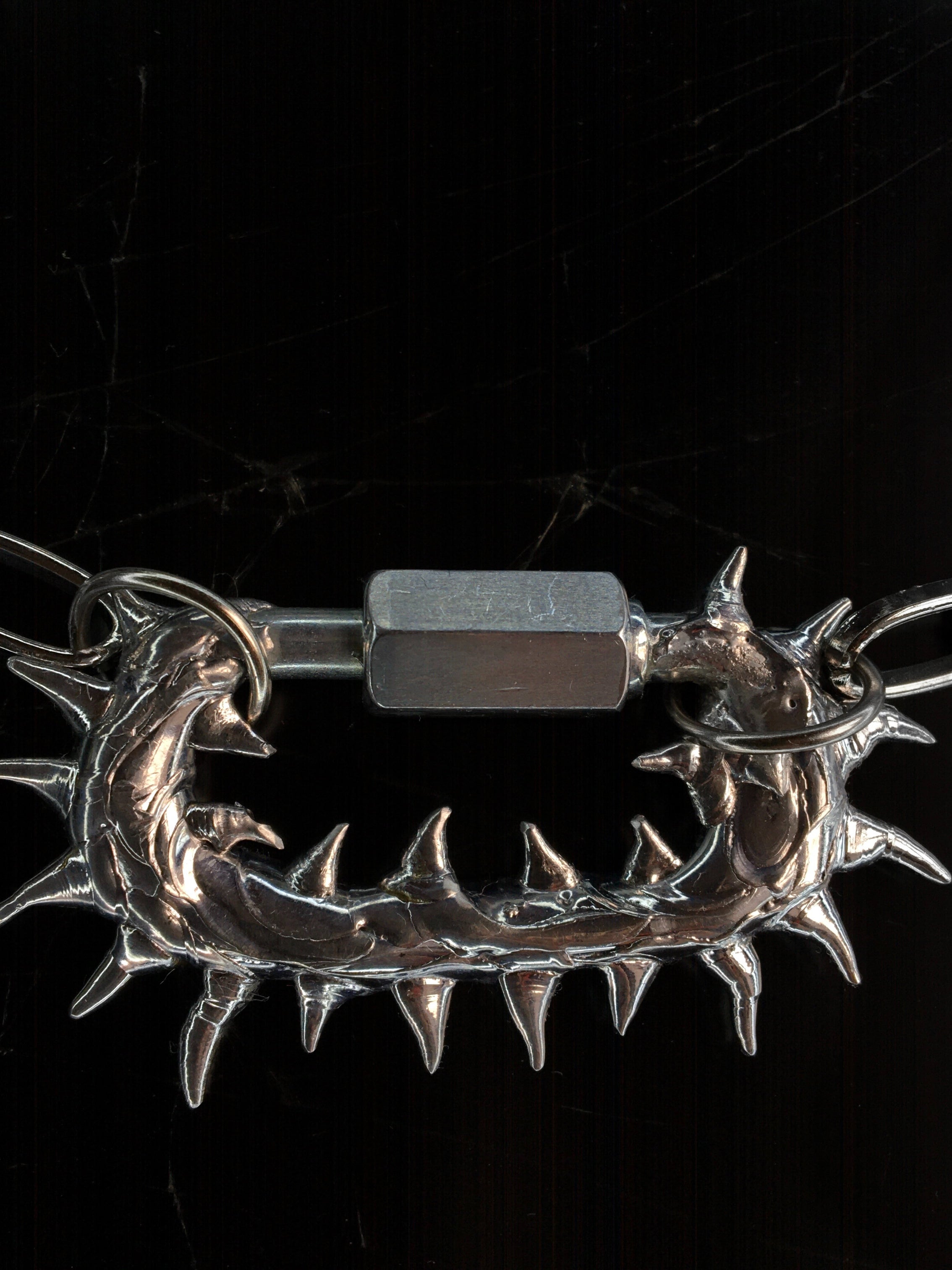 Made of pewter (98% tin, 2% cooper) carabiners made of steel chain made of steel with chrome plating