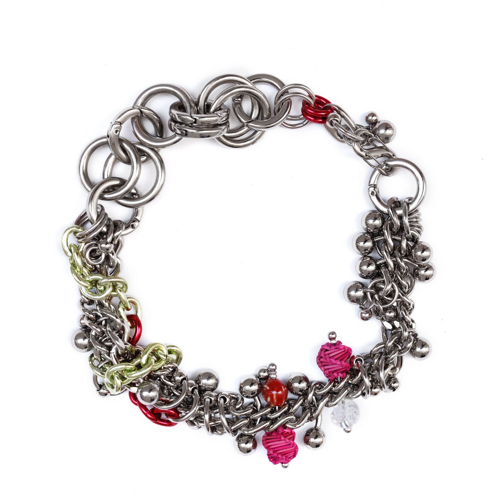 Material: Steel and aluminium chains, glass beads, ceramics and Colonião grass.