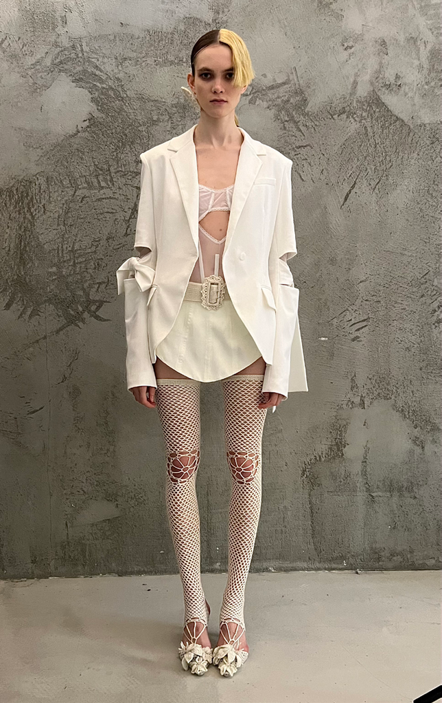 Established in 2020 by twin sisters Anastasia and Maria Vaniushina, Nastyamasha is a fashion label that designs wearable and comfortable garments that allow for easy movement. The brand incorporates mesh fabrics and crocheted knitwear to give a fresh interpretation to conventional restrictive clothing, featuring structured corsets, textured miniskirts, and strapless tops.