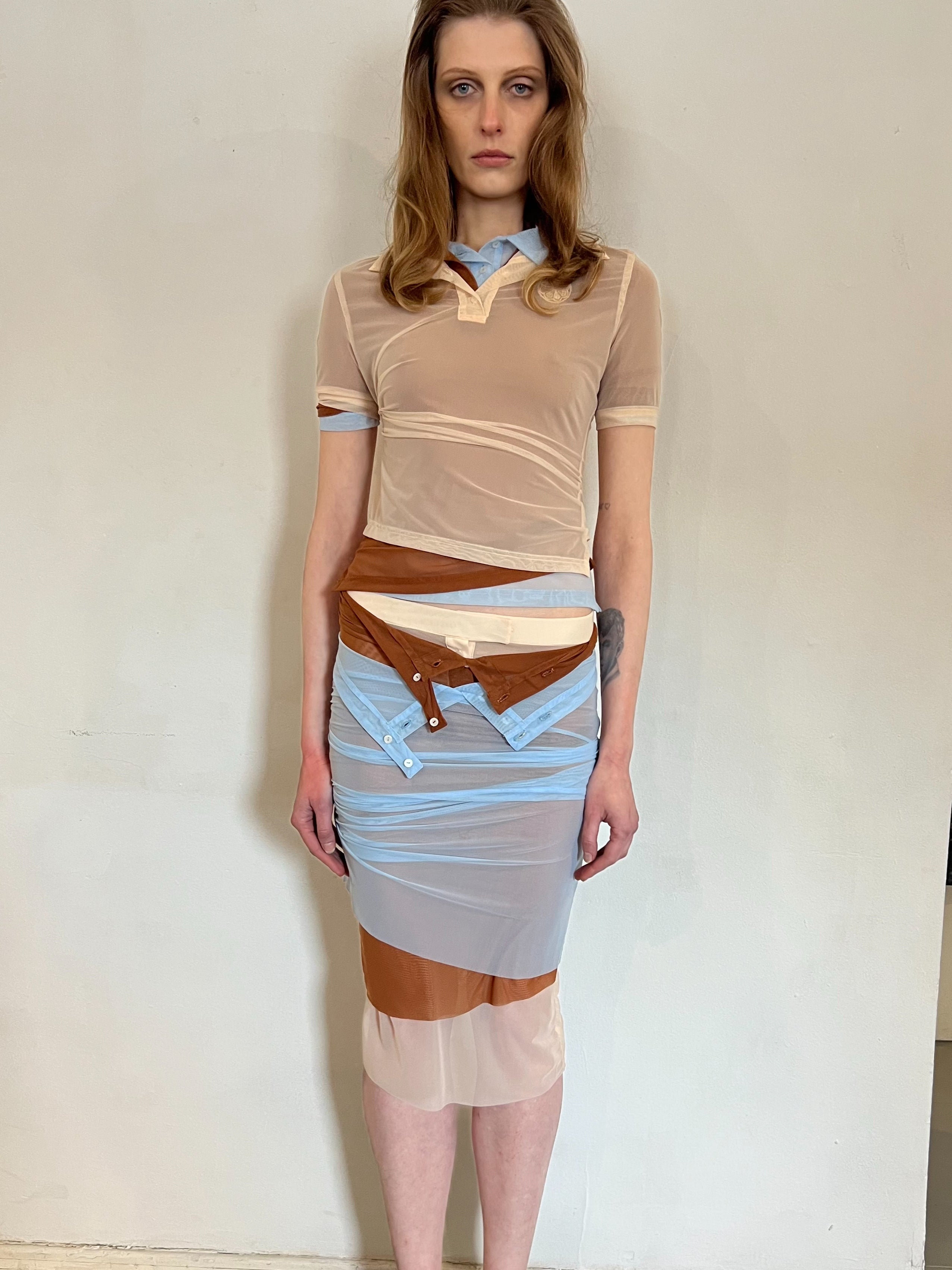 Mesh triple polo shirt by nastyamasha. Material: 84% polyamide 16% elastane this piece fits true to size and has a bit of stretch.