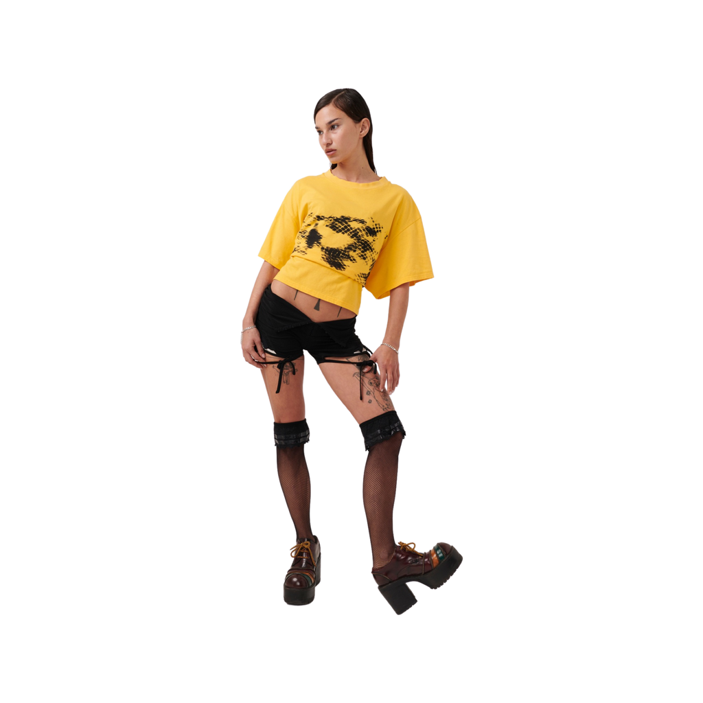Front hook and eye closure, that can be worn between high rise and low rise. Side hook and eye detailing with front extended binding closure. Ties at front