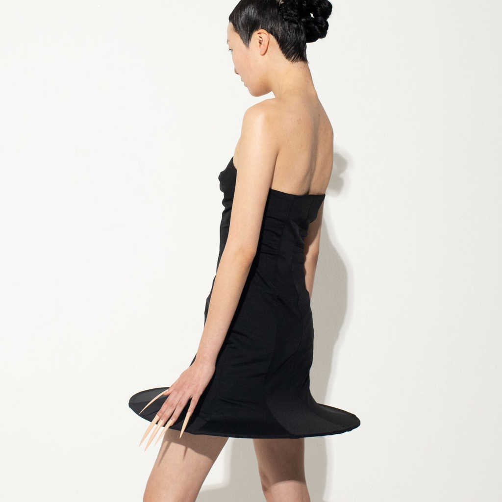 Black micro tube dress made of elastic jersey fabric.