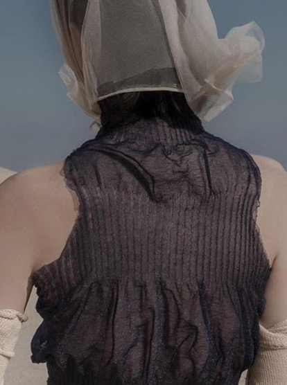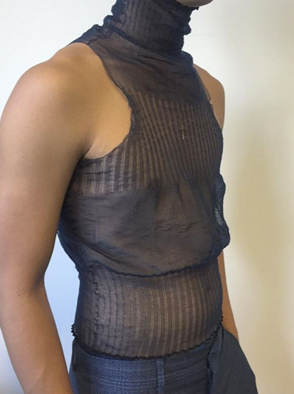 Hand-made dark grey sheer monofilament turtleneck. No waste is created when making this piece.
