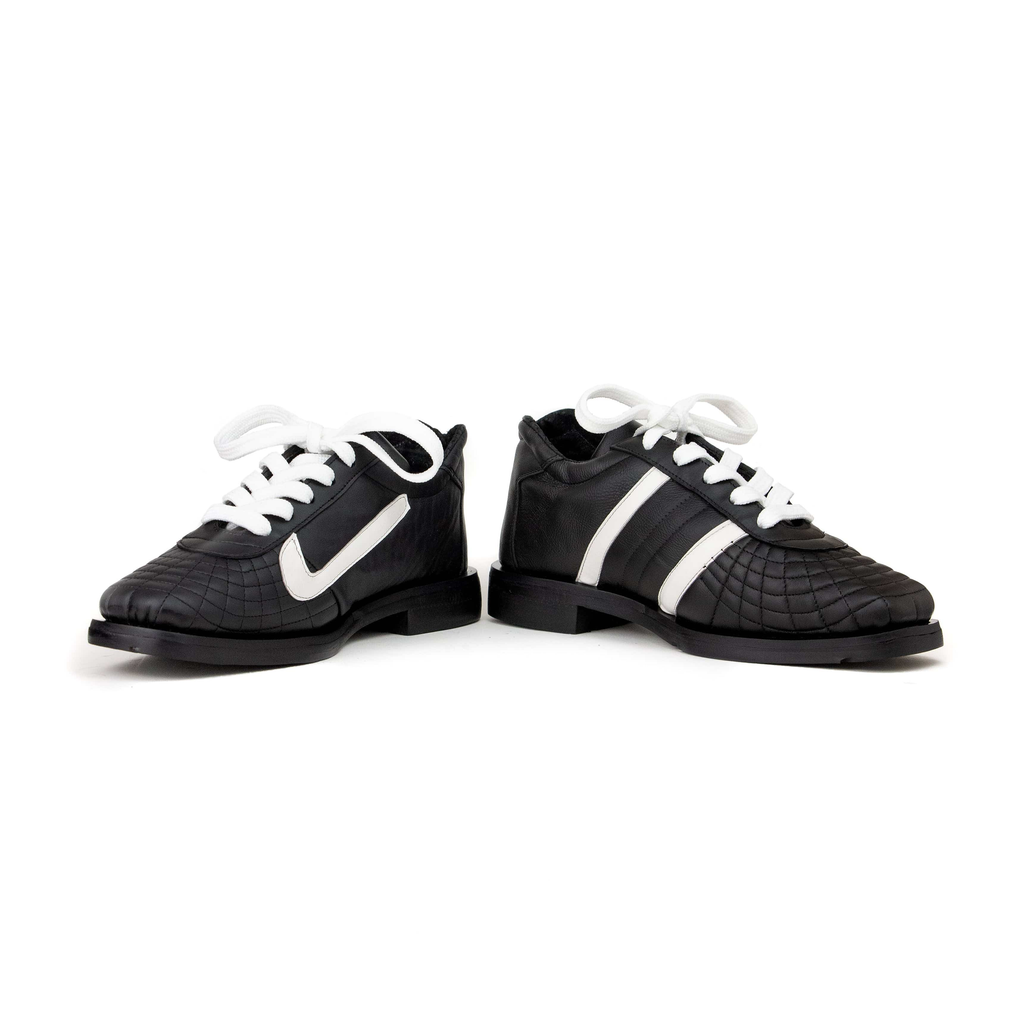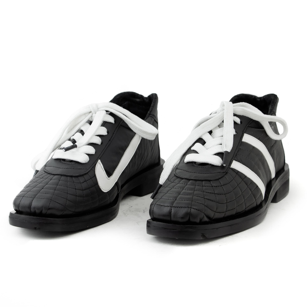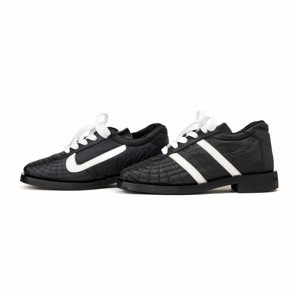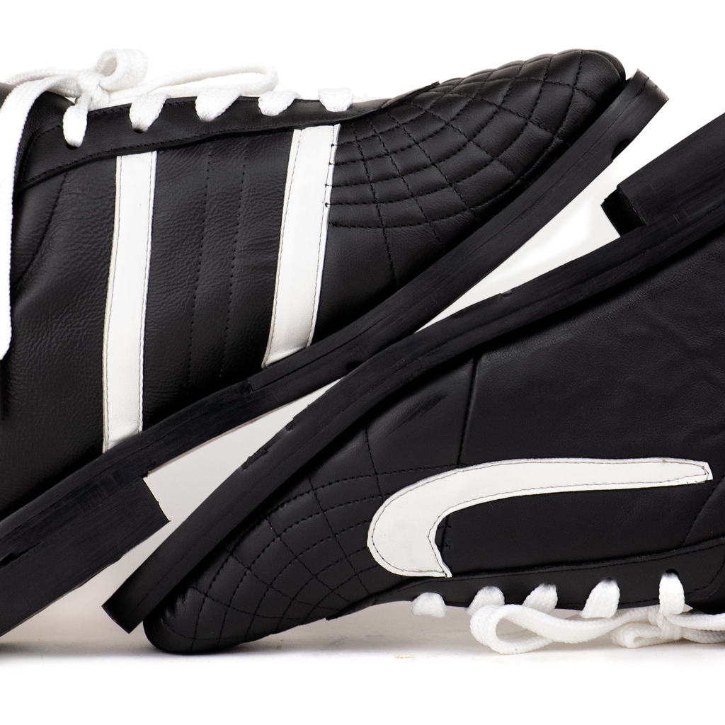 Upcycled leather. Upcycled tire rubber sole.