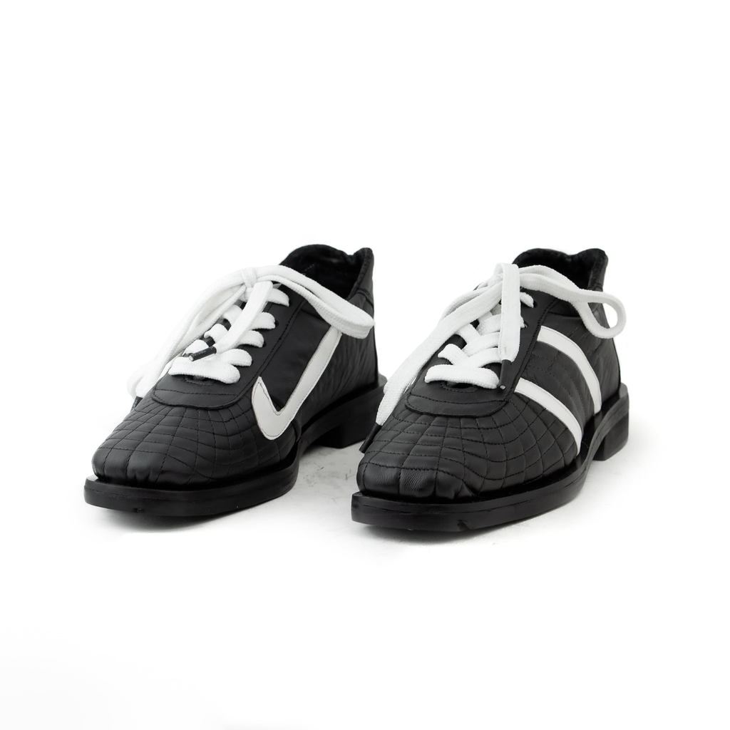 Known for their chunky heels and extended soles,  Mexican footwear label Cruda experiments with proportions while solely using deadstock materials. Like one of those small plants that we discover in unexpected places, a herb that comes out of the crack and survives, that's how Cruda was born.