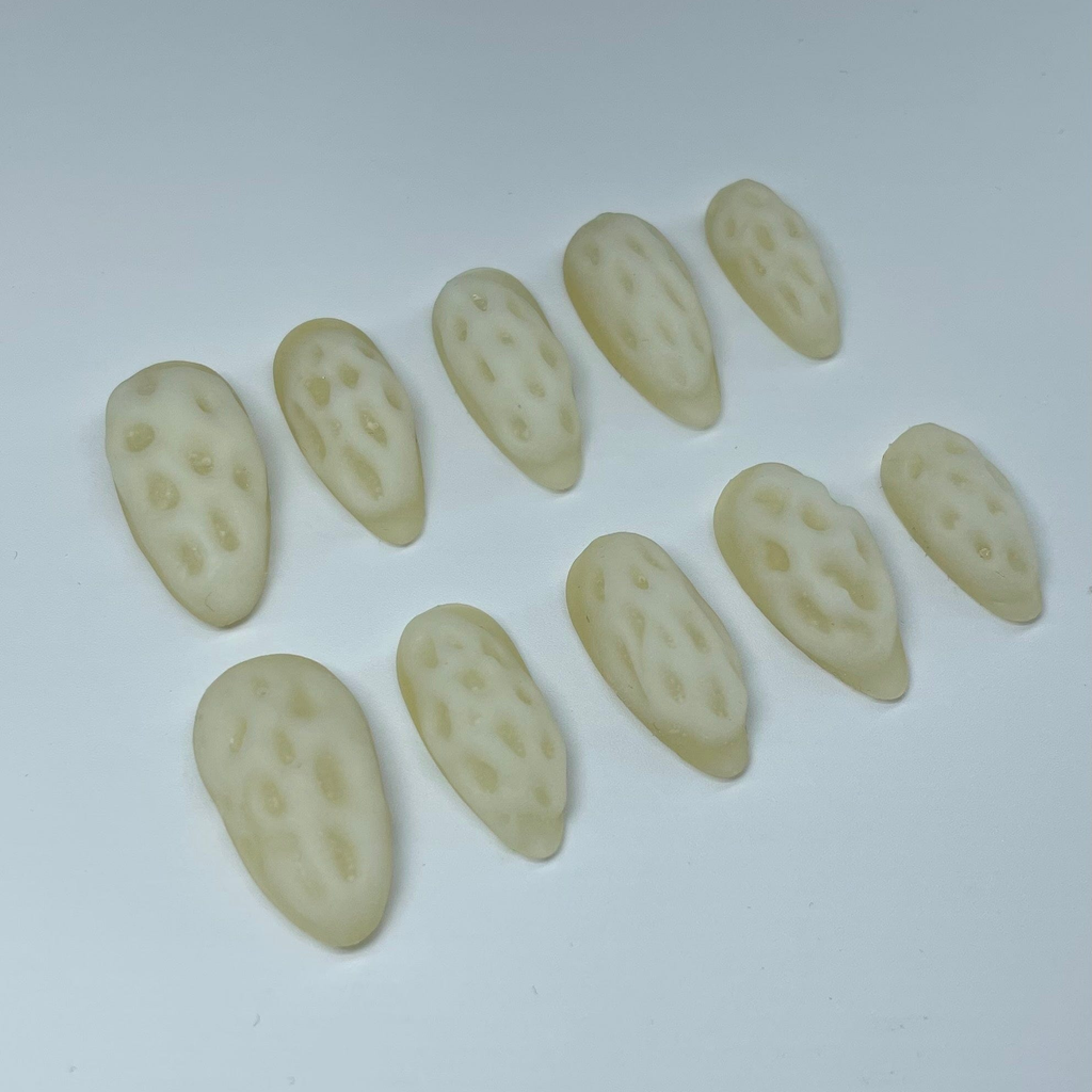 A 10-piece set of fake acrylic, reusable nails inspired by true morels. Each set is made custom to your nail sizes. The shape and length of the tips can be modified according to your preferences. A sizing kit will be provided to you after making the purchase. Tips are made by hand with love. Each set is unique.