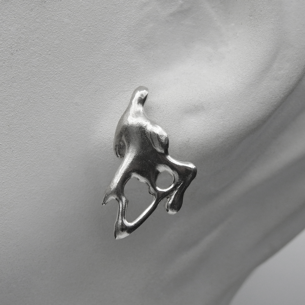 A single earring with a small earring clutch for behind the ear included.