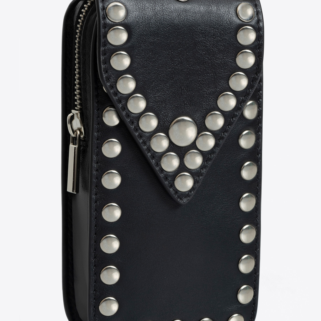 Materials: 100% calfskin vegetable leather, 100% cotton lining, 100% brass studs
