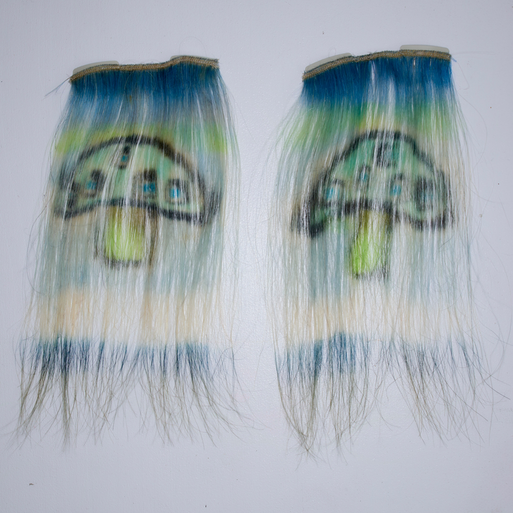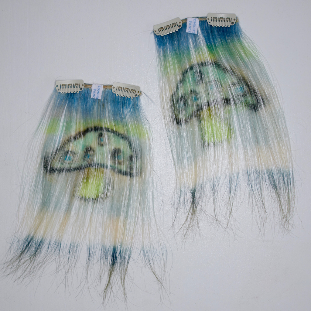 Materials: all hand-made, 100% Human hair, hand-dyed / clip-on