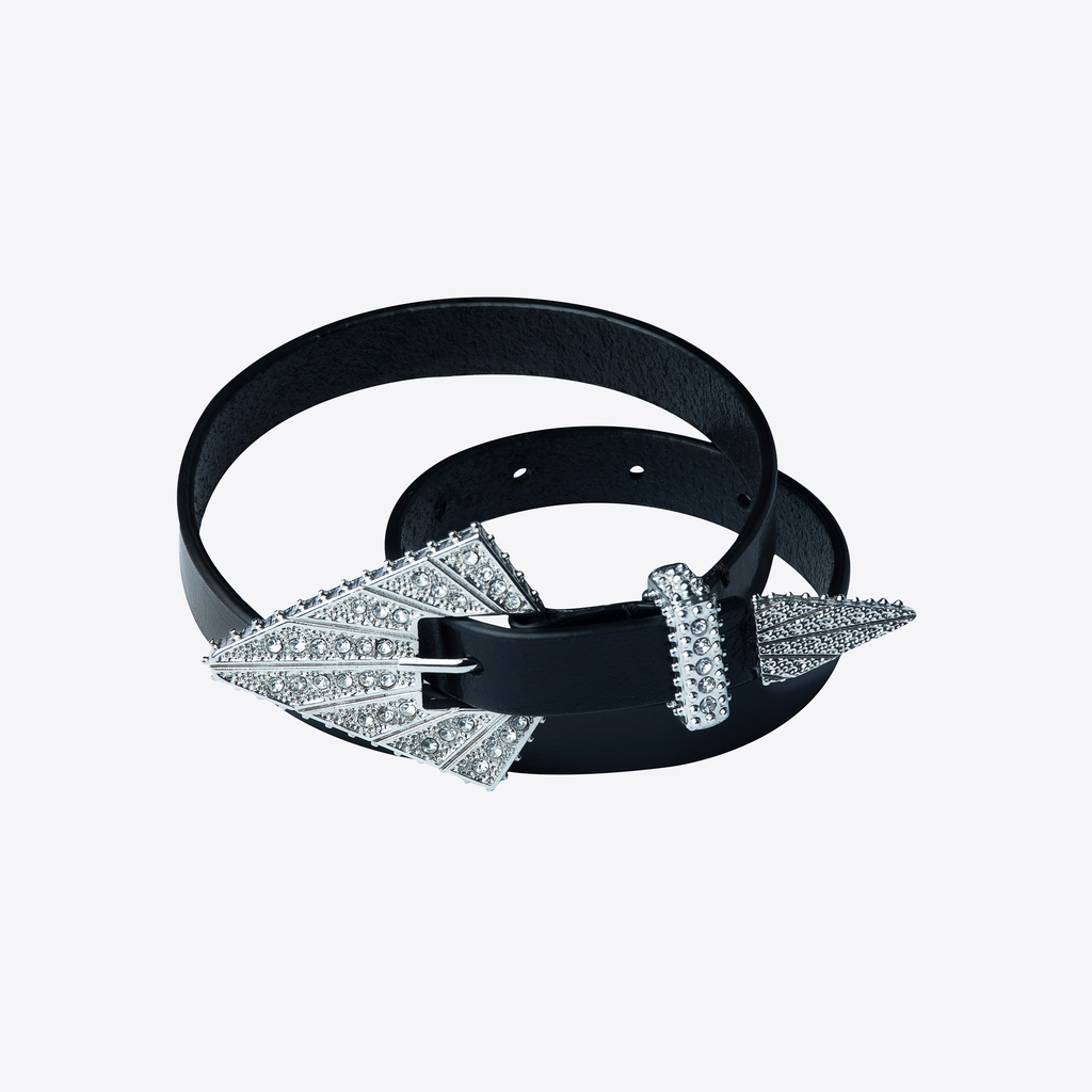 CALFSKIN LEATHER CHOKER WITH A CARVED SILVER-TONE BUCKLE FASTENING SET. ALSO AVAILABLE IN VEGAN LEATHER.
