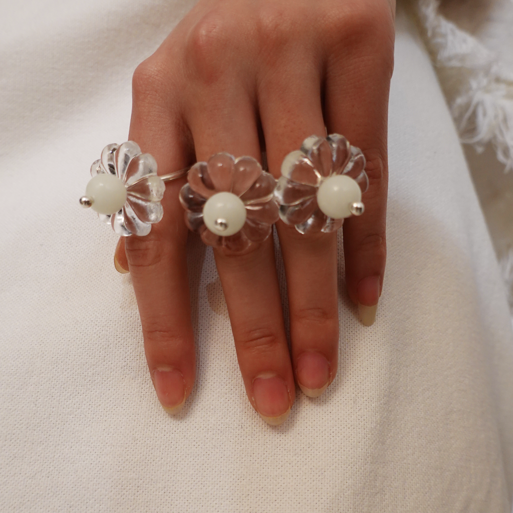 crystal luminous stone floral ring