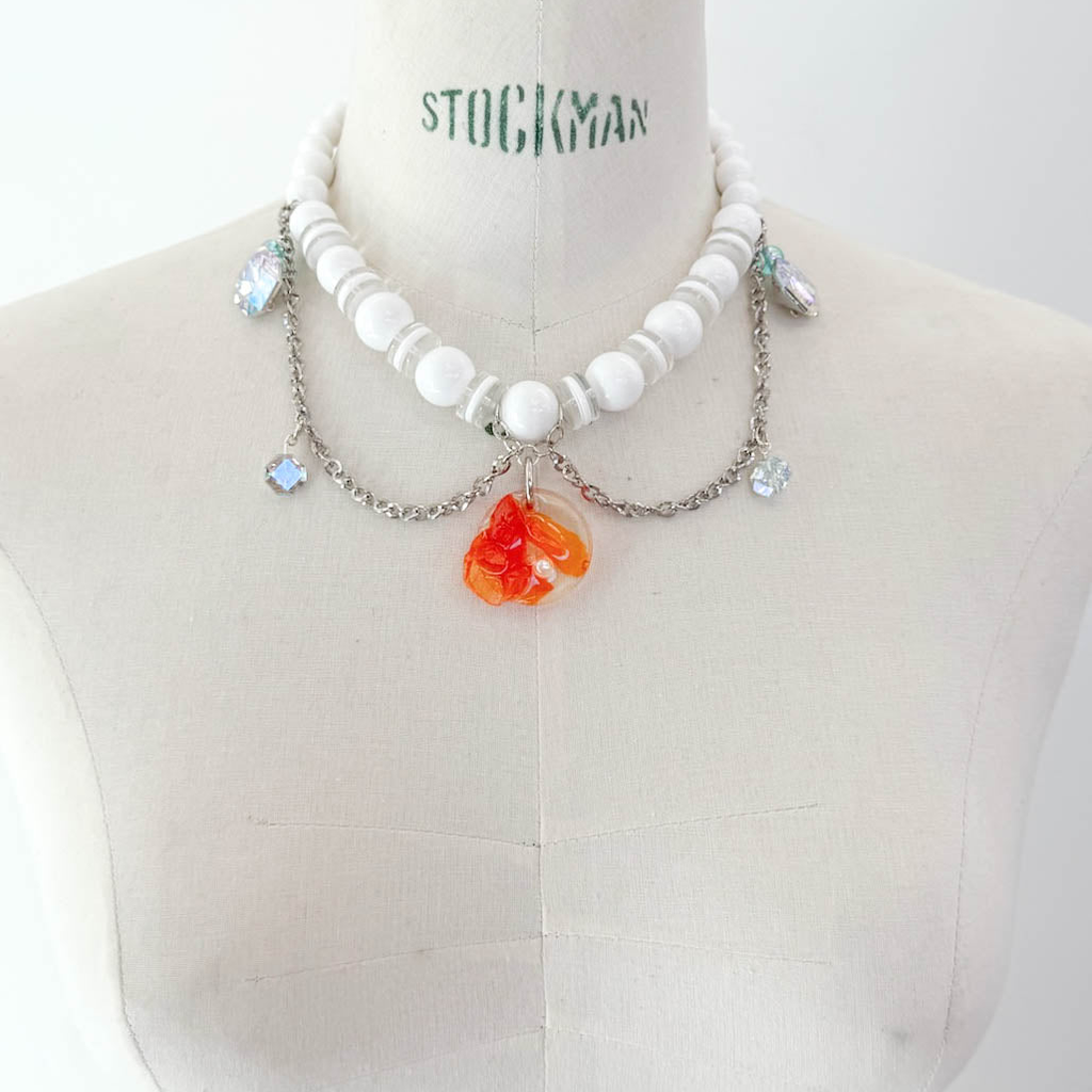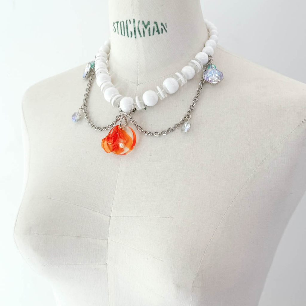 100 % up-cycled necklace parts. These are all one of a kind pieces: colours, shapes and material will be different from one to another. -