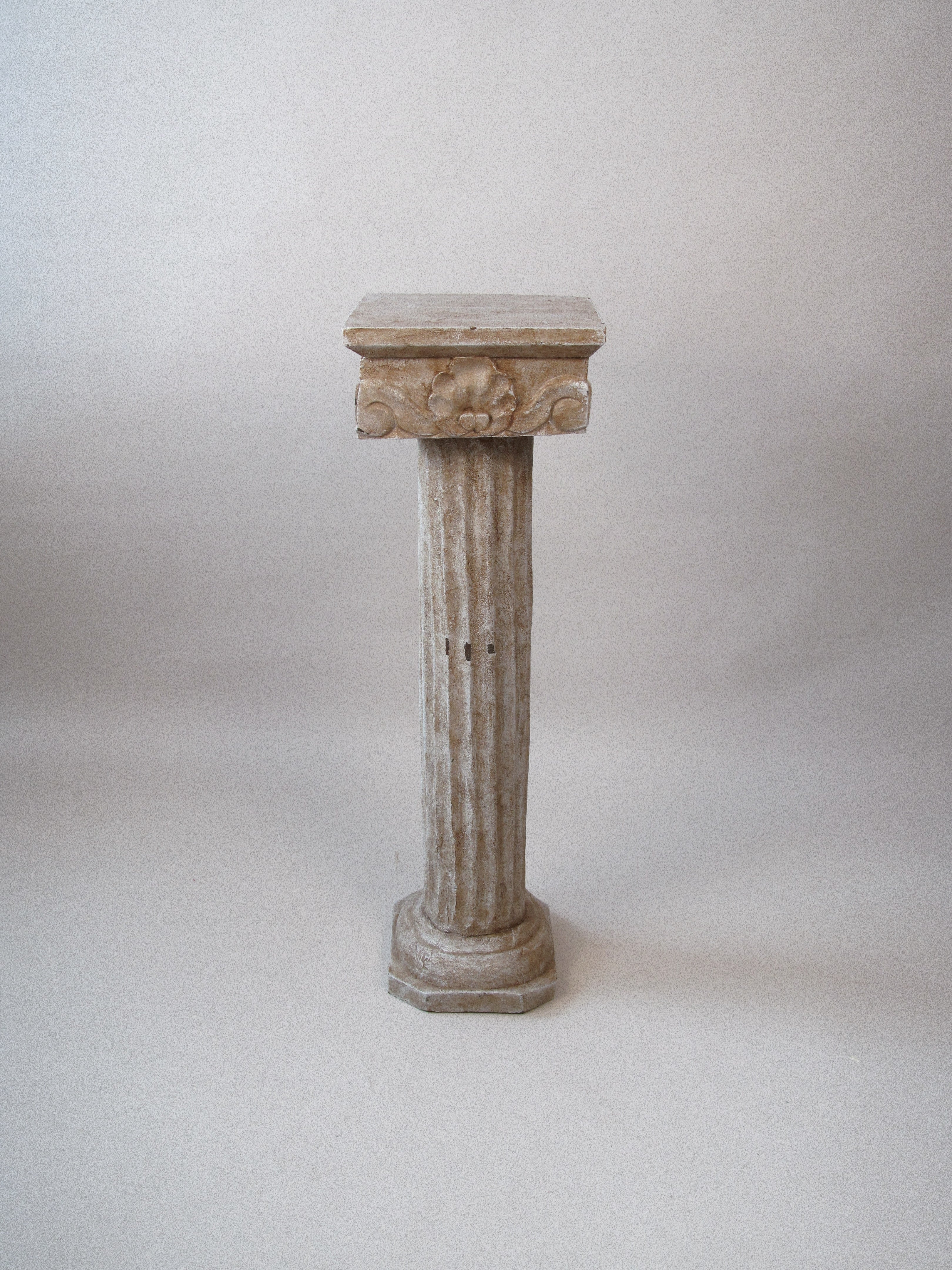 Neo classical style plinth made from wood base and stucco plaster. Please further note shipping is billed separately. You'll receive a tailored delivery quote within 48 hours of purchase.