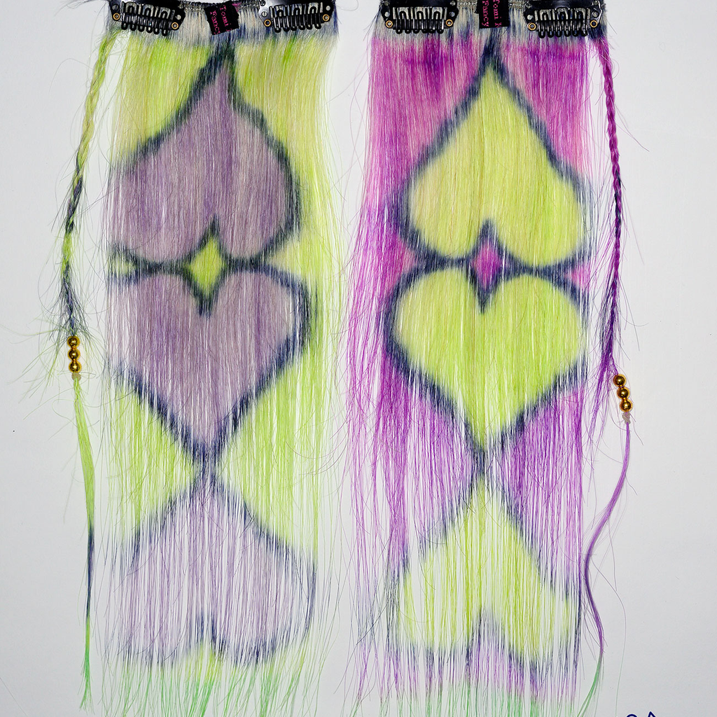 Materials: all hand-made, 100% Human hair, hand-dyed / clip-on