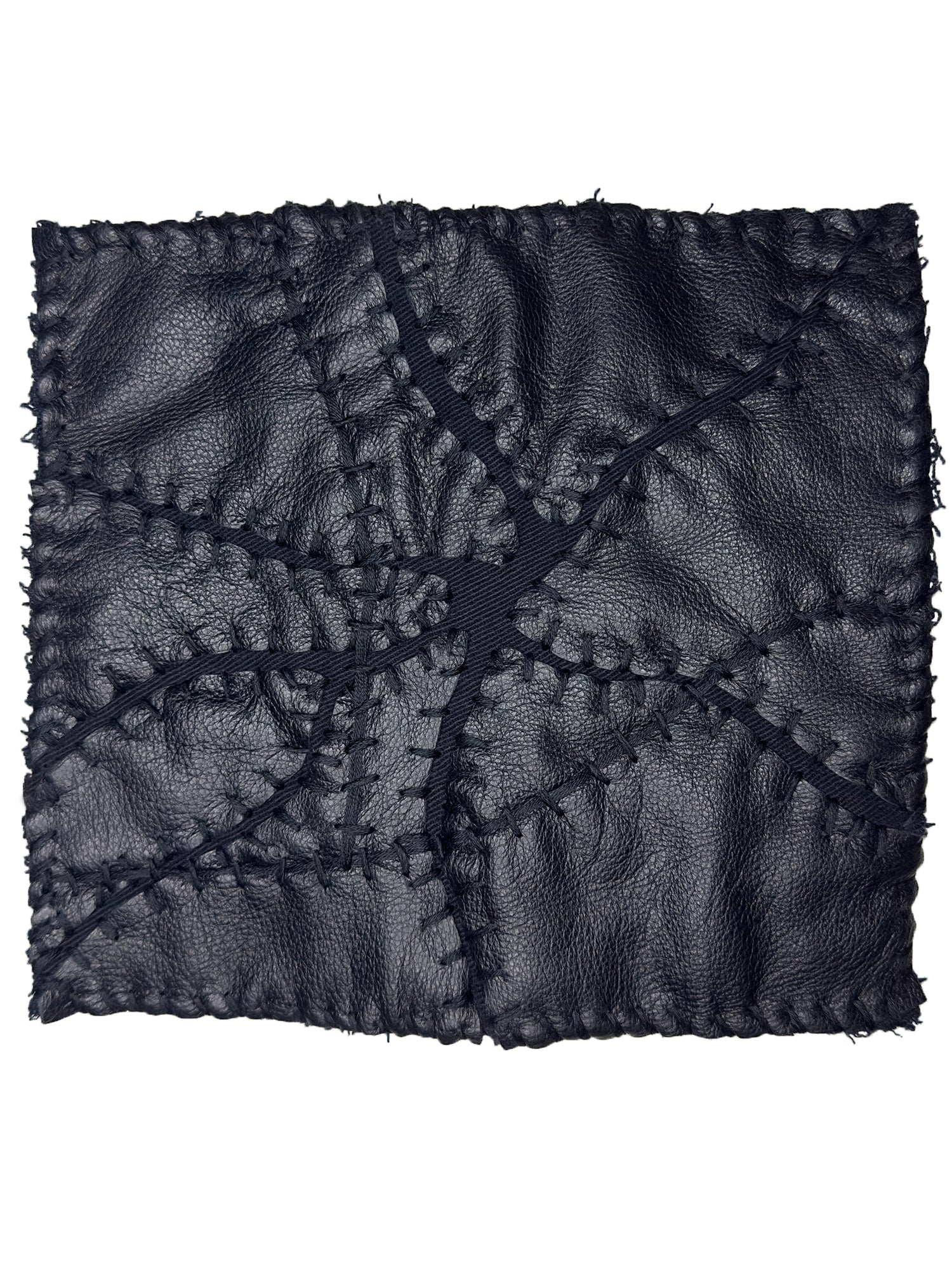 Leather sourced from vintage leather jackets hand sewn leather exterior. Hand embroidered denim interior 2 bill pockets with zipper closure 3 card slots. Key loop.