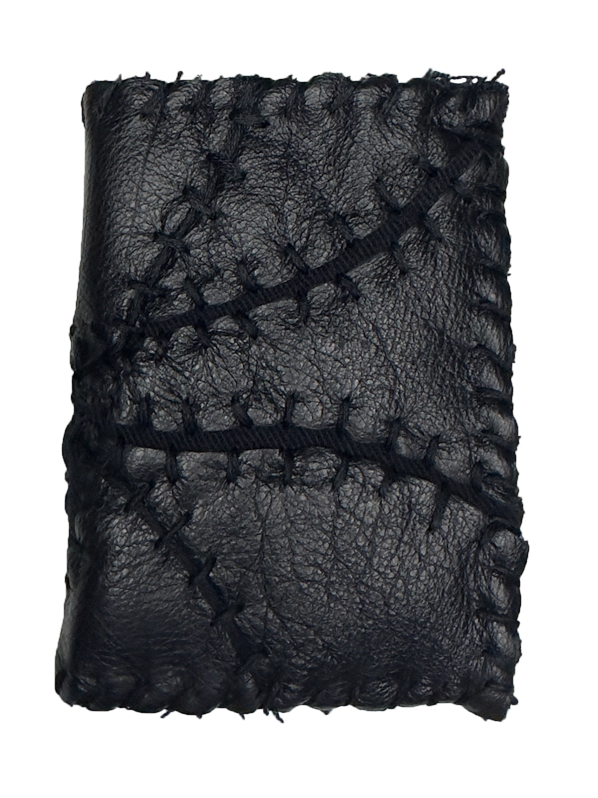 Leather sourced from vintage leather jackets. Denim interior. Hand embroidered 8 card slots. Bill slot.