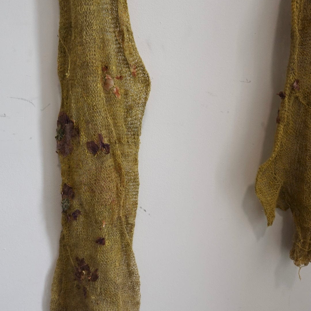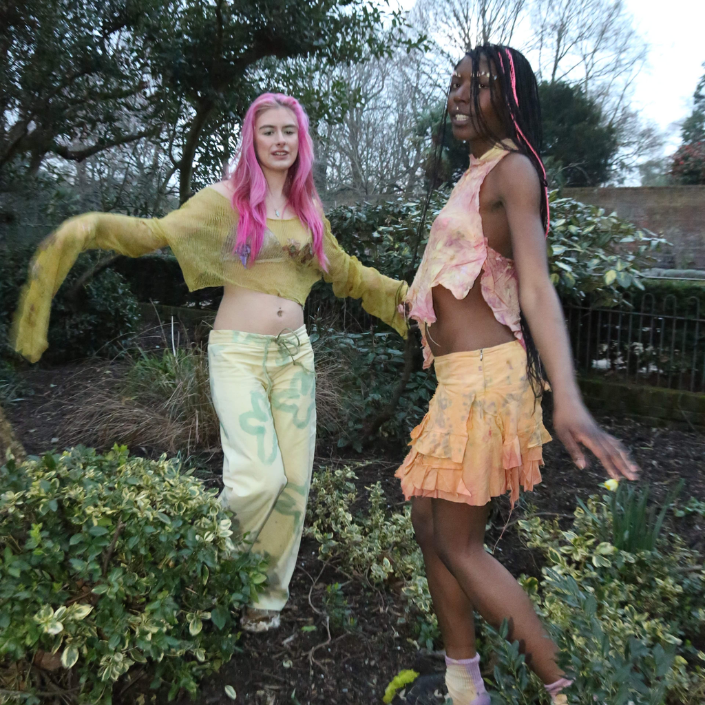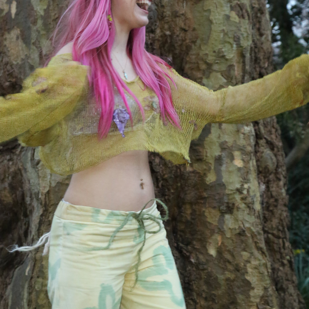 Deeply connected with our natural world and its synchronised patterns, EIRINN HAYHOW carefully explores the foraging of wild plants, herbs and bark. Fascinated by the potential frequency of psychological energy waves emitted from plants and trees, and how these are synchronous with our hearts. She makes all the material for her collections using a combination of intuition and research-led processes. Her playful exploration of natural material has seen her recently exploring the use of living moss, incorporated into knit from foraged nettles and banana yarn.