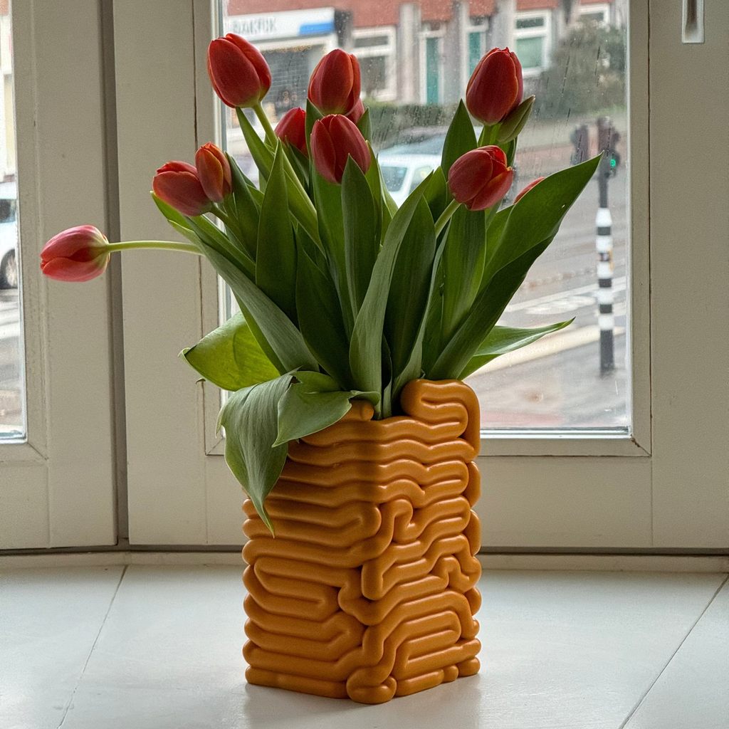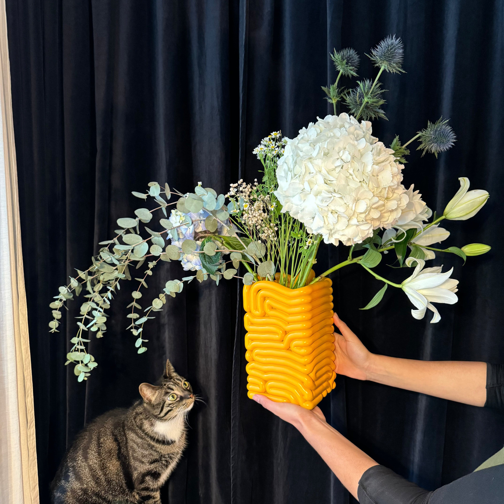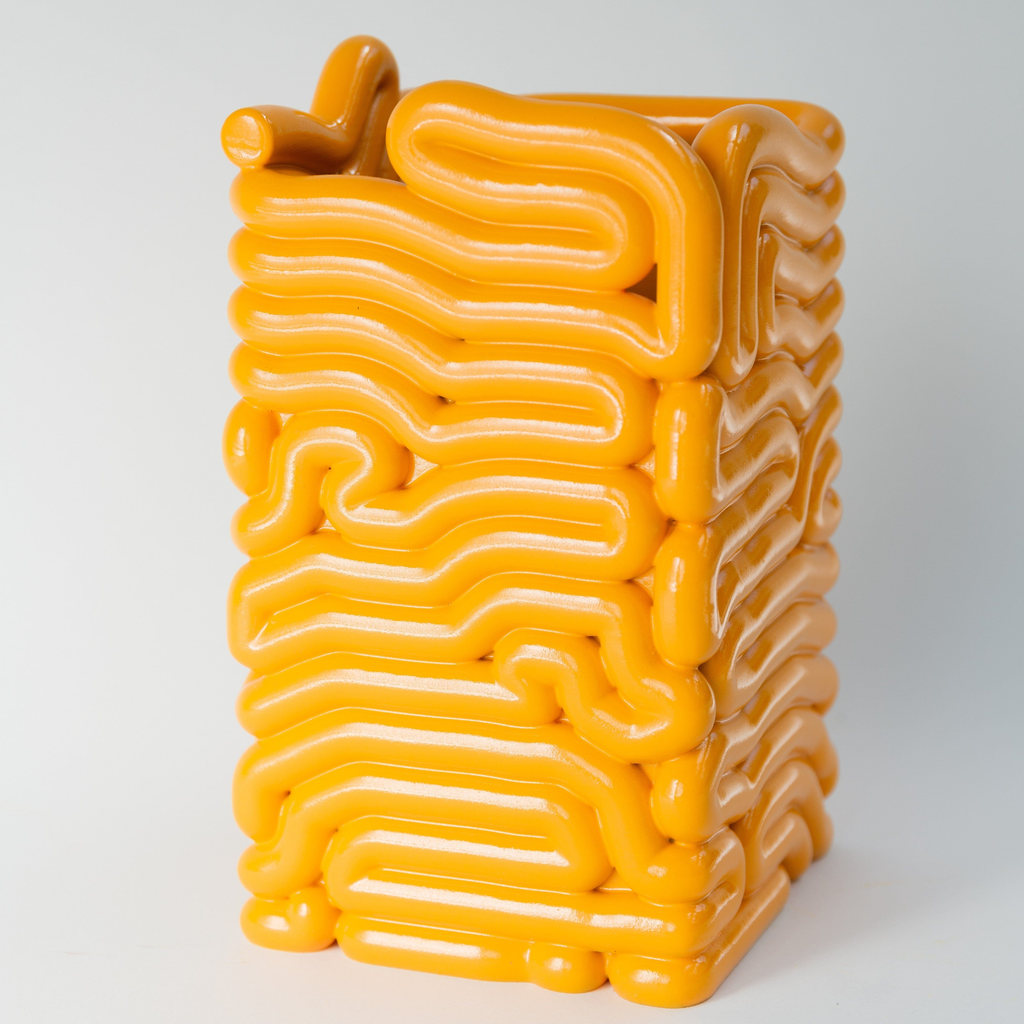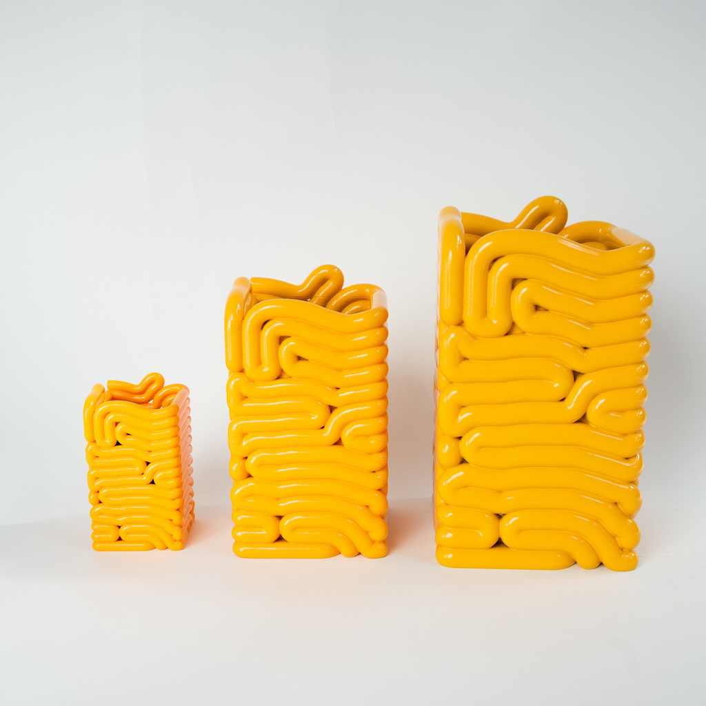 In addition to their predominantly on-screen design practice, Gast Studio now brings a fresh perspective to pottery — by blending traditional craftsmanship with digital innovation. Their unique series of vases is the result of a playful and ongoing exploration of CGI's material qualities, combined with the dynamic tension between manual and automated crafts. These vases are more than just decorative objects; they invite us to reflect on the ever-evolving connection between art and technology, where the lines between the physical and virtual realms of our times are beautifully blurred.