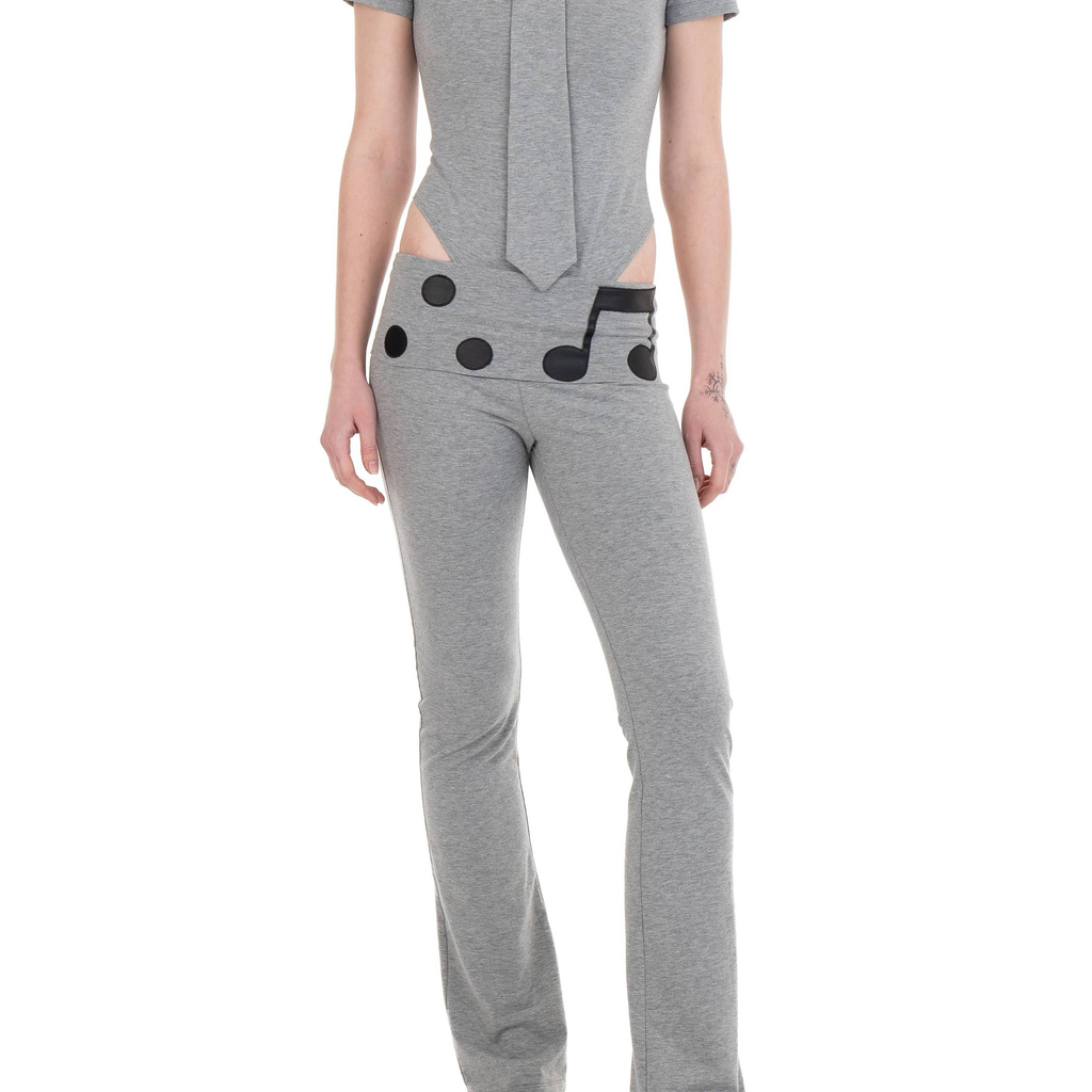 Slightly flared leggings, featuring leather note appliqué on waist.