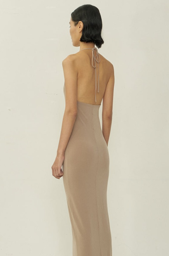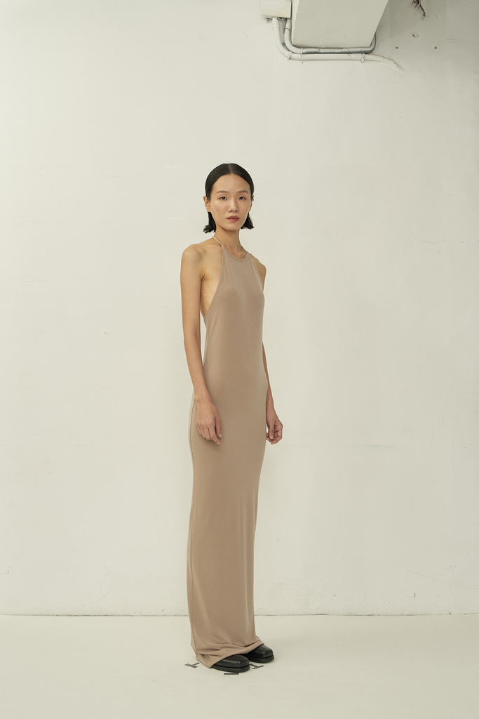 Skinny Apron maxi dress in nude.