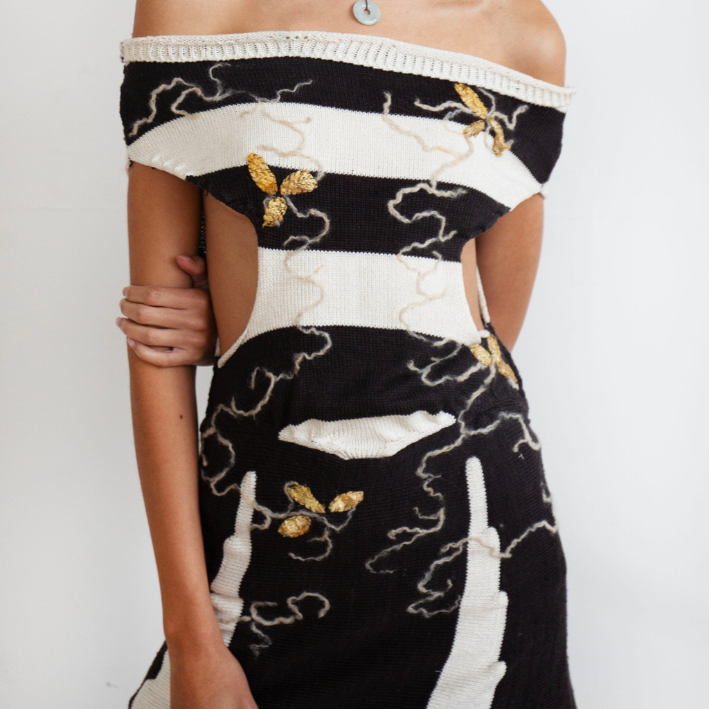 off shoulder ink dress