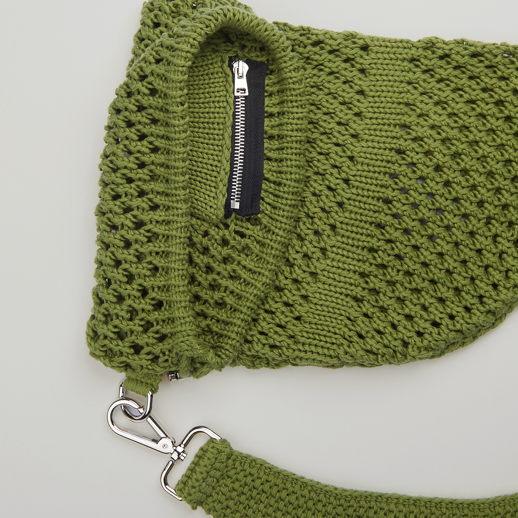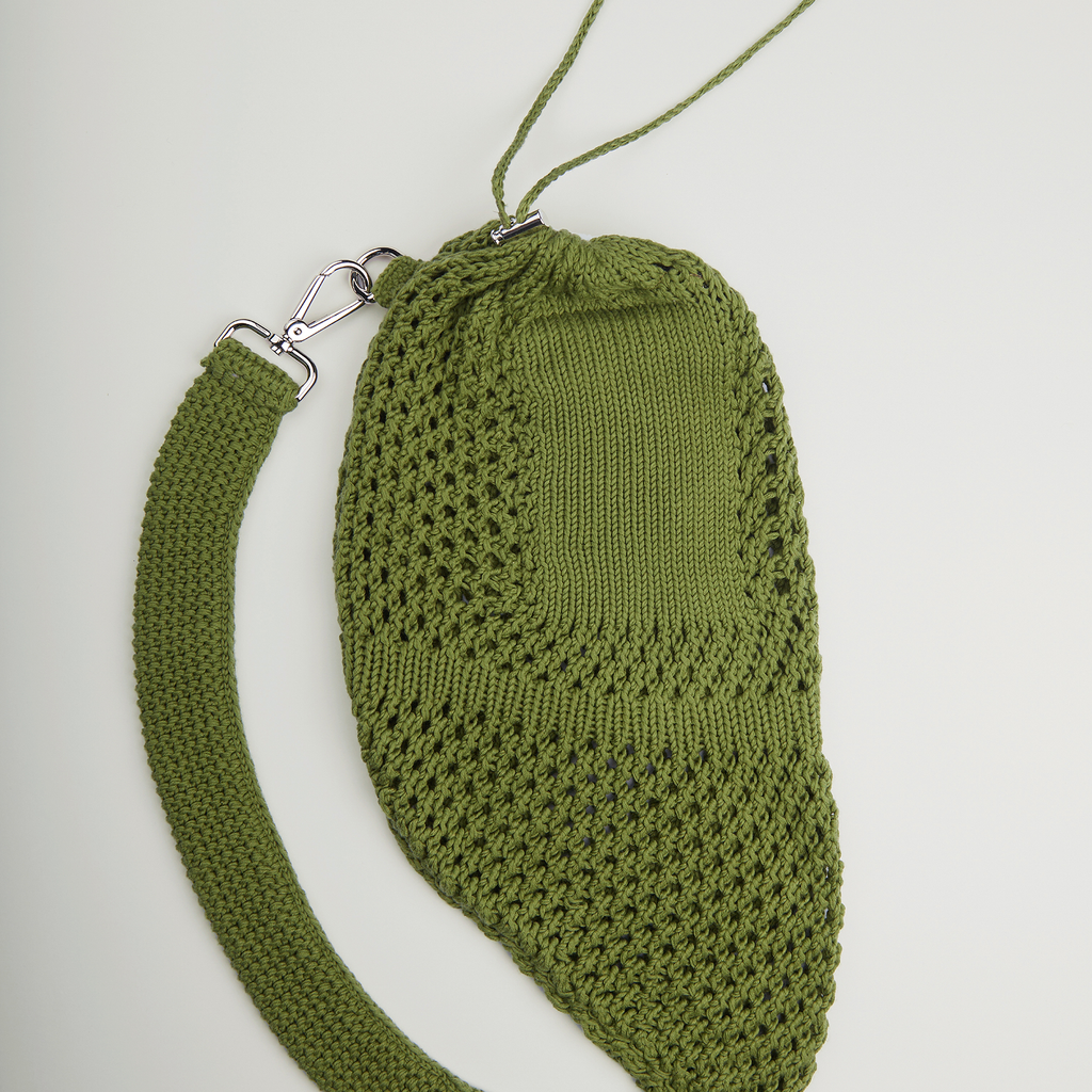This knitted mesh stitch sack features a metal cord lock closure and an incorporated zippered pocket for essential belongings. The belt ends with a 40mm keychain metal carabiner attached to a D hook.100% Egyptian Cotton