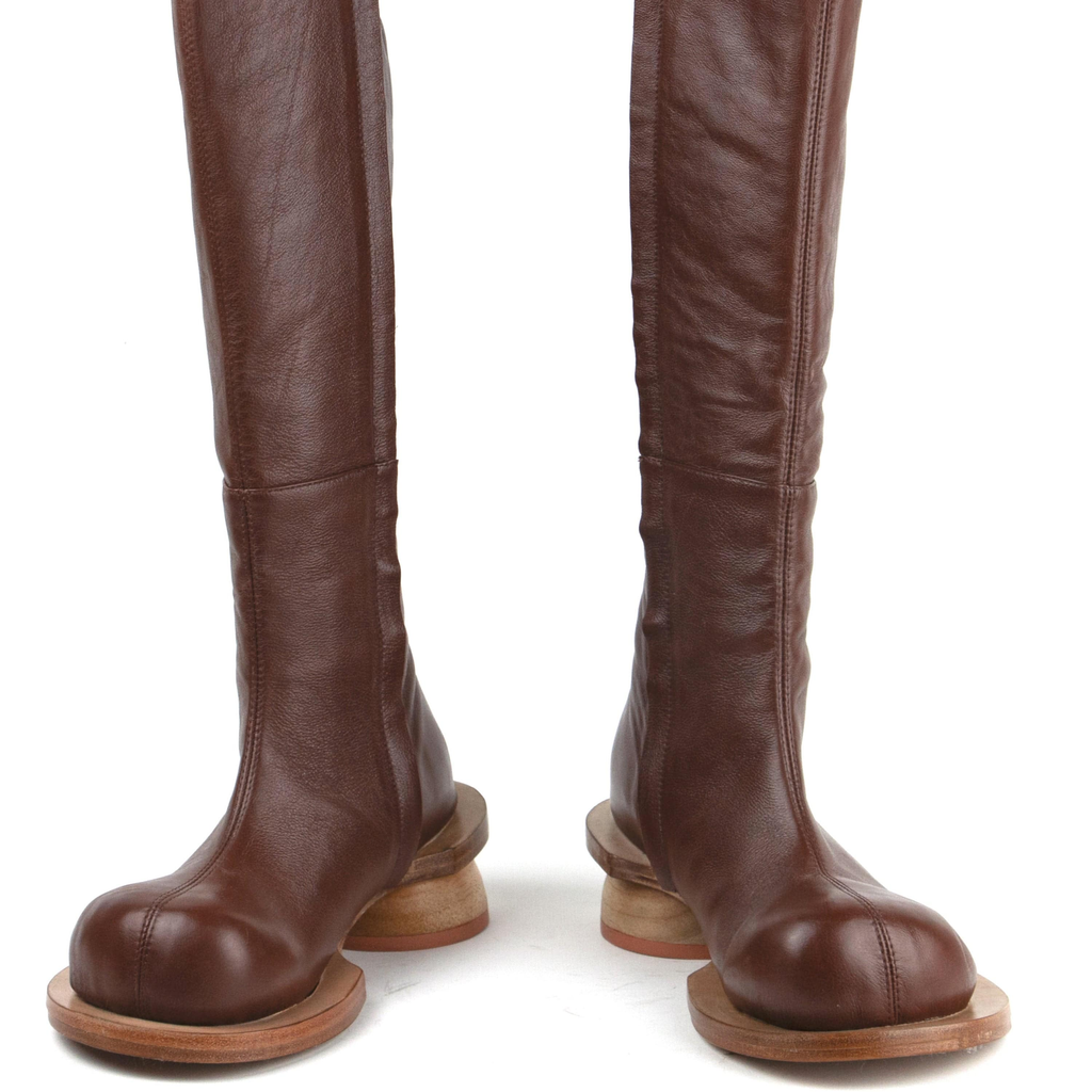 Known for their chunky heels and extended soles, Mexican footwear label Cruda experiments with proportions while solely using deadstock materials. Like one of those small plants that we discover in unexpected places, a herb that comes out of the crack and survives, that's how Cruda was born.