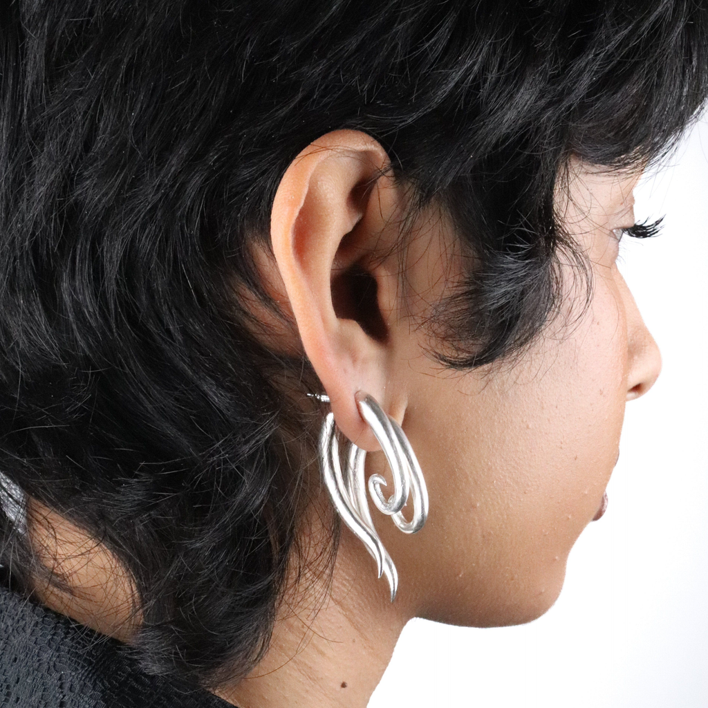 silver, these earrings feature a rough polish finish that adds a unique, raw elegance to