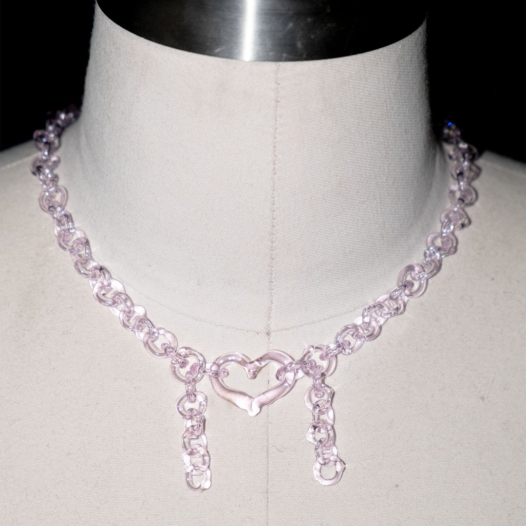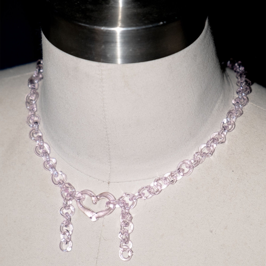 Subtle yet bold glass chains, handmade from borosilicate glass. Each necklace is crafted with precision and care. The necklace is adjustable in size, allowing it to be worn as a choker or longer piece.