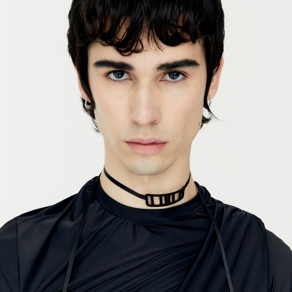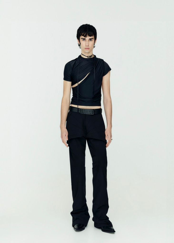 ONRUSHW23FH, a Spanish experimental design brand founded in September 2020 by Albert Sánchez and Sebastian Cameras. Sánchez and Cameras initiate their design journey with a curated amalgamation of influences—movies, images, words, sounds—that coalesce into a substantial mood board. At the core of the duo's creative process lies a seamless integration of digital craftsmanship. 3D prototypes, initially draped over mannequins like canvases, undergo a transformative journey of modification and distortion.