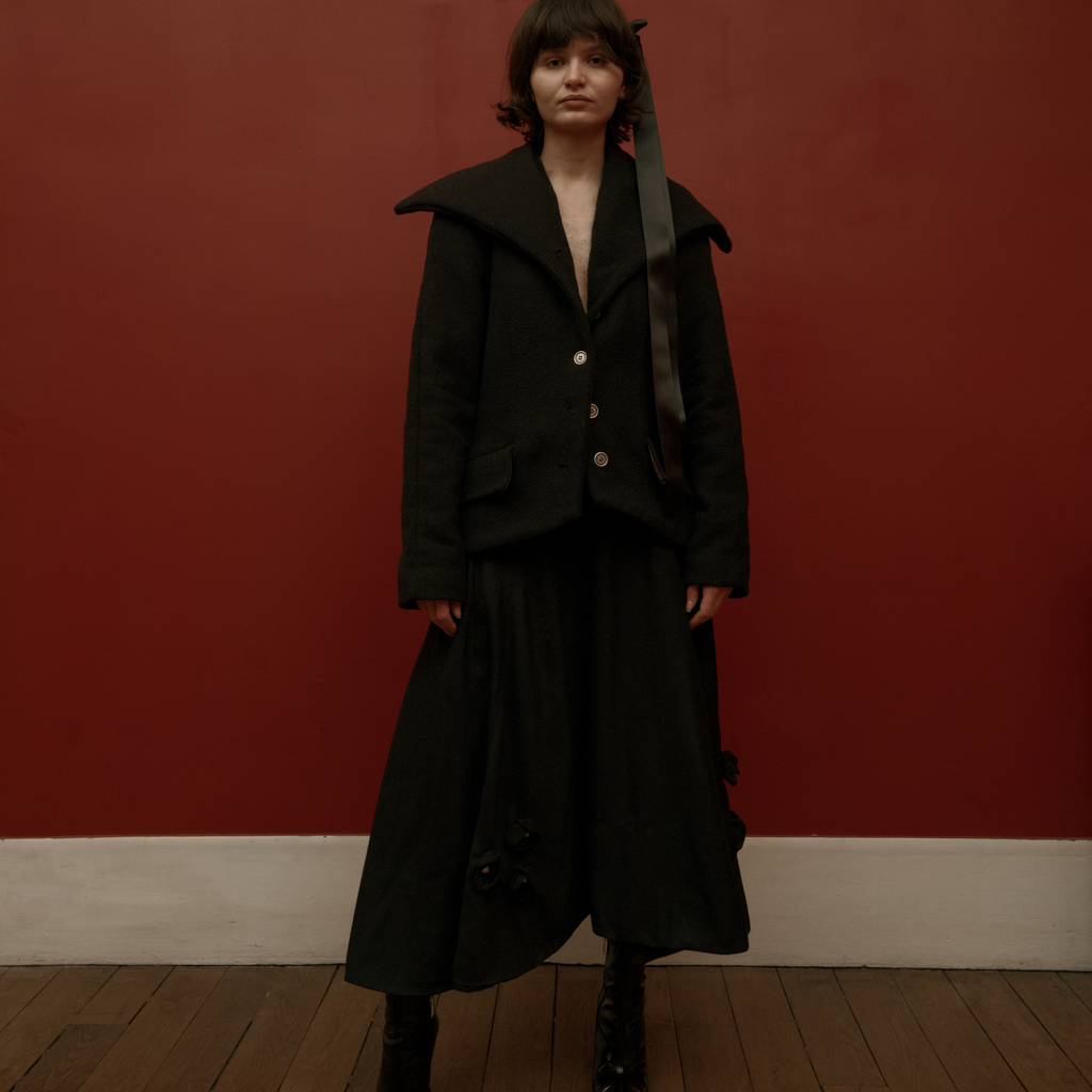 Polyhedron is a Paris-based brand founded by Vera Petryaeva in 2015. Blending historical patterns with unusual cuts, Polyhedron’s pieces tell their own tales through craftsmanship and narrative imagery. Each collection is the result of the clash between classical cultural references and modern sensibilities. All of the garments are hand manufactured in the studio, using found and local assets.