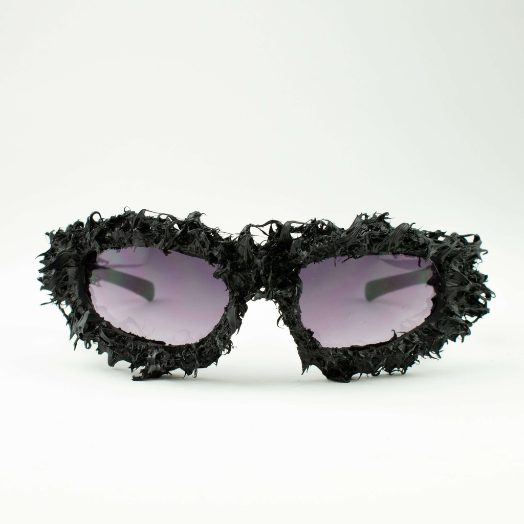 These glasses in rubber interrogate the origin of the materials through a random and unstructured aesthetic.