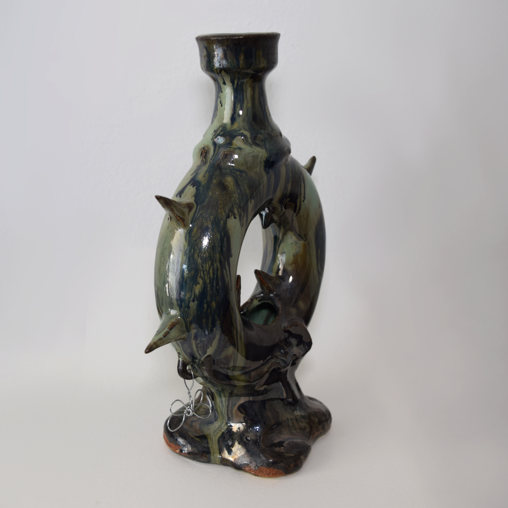 Claire St Clair is an American ceramicist, illustrator, and maker working in Los Angeles. She began building her universe through Clairosphere in late 2019. Her work is inspired by her perception of the world: full of fragments and shards that glitter in the light. Sometimes these broken pieces have sharp edges that cut very deeply; sometimes they’re like velvet-fresh snow. She collects these pieces carefully and ties them together with a satin ribbon. The translucent overlap between the fragile edges synthesizes her layered mythology. Clairosphere is a gossamer lace caught in infinite thorns, made up of sculpture, wares, drawings, and fibres.