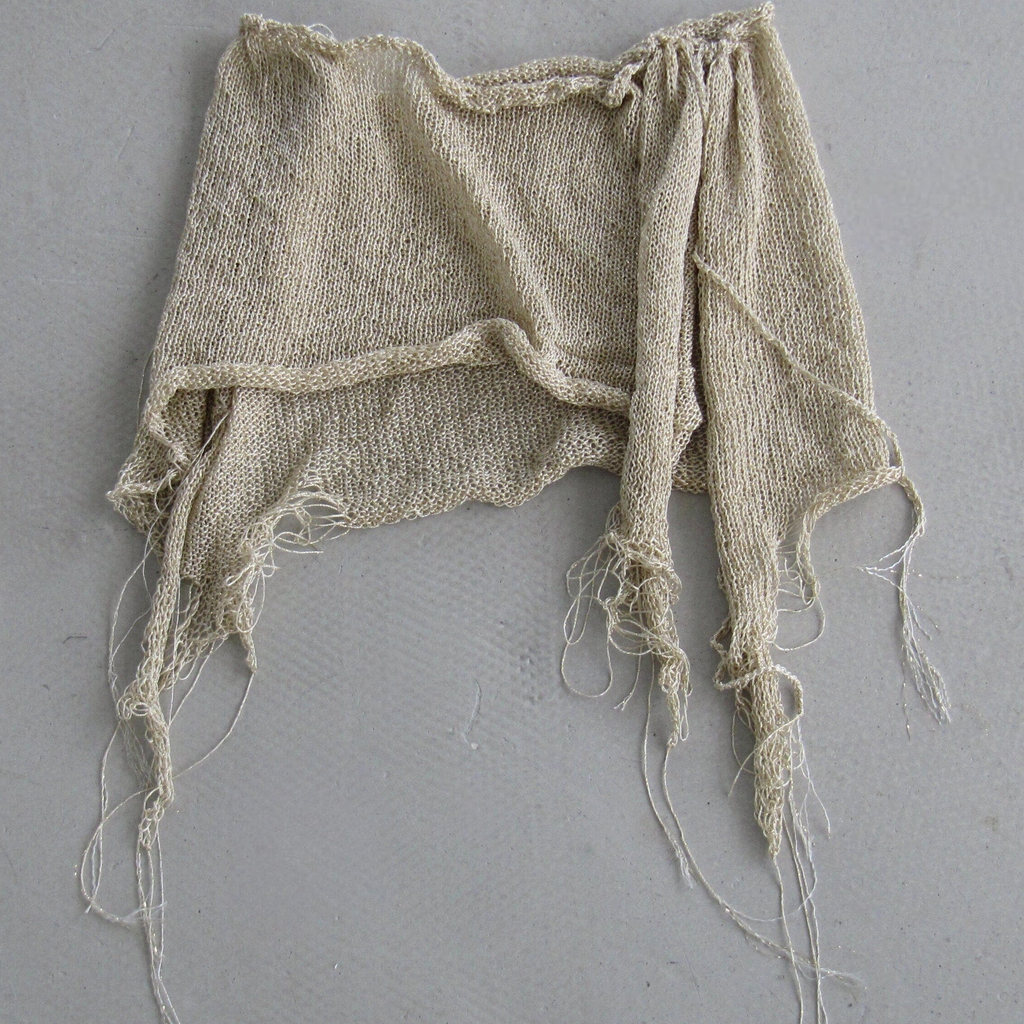 A knitted pareo crafted from shimmering yarn, featuring an asymmetrical design with openwork details at the ends. Can be worn as a skirt, perfect for beachwear or styled for a party look. Allow some differences from photo as every pareo is hand-made.