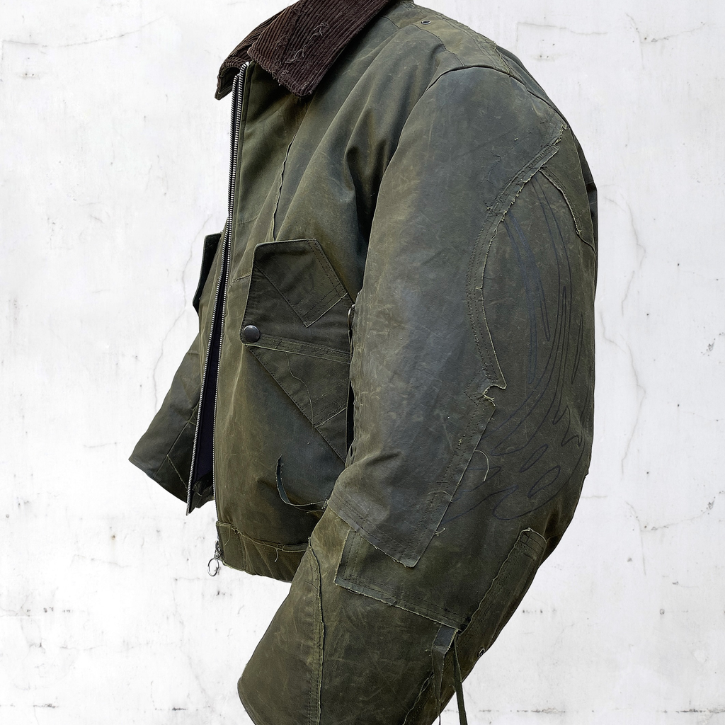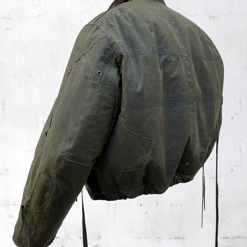 This item has undergone a special manufacturing process using vintage garments, original and deadstock fabric. Any irregularity, color shading, and variation is intended and should not be considered a defect. This artisanal garment will reveal itself through and over time.