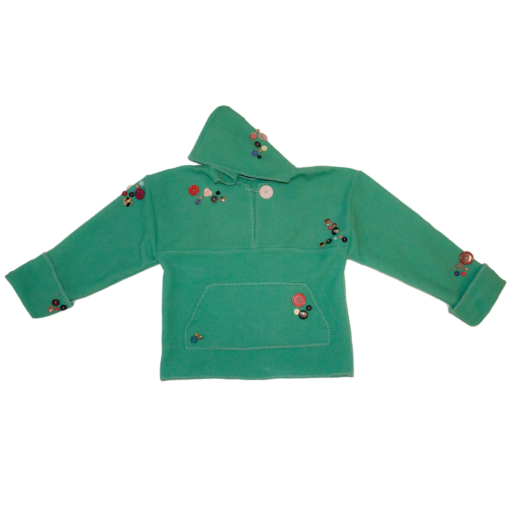 A baggy loose fit with cream trim and mohair sections, it comes with vintage clay cat buttons that only button at the top.