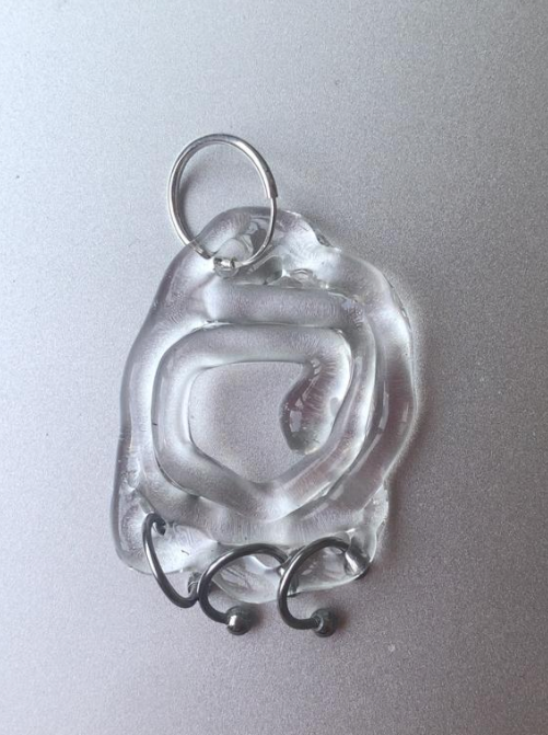 Transparent highly resistant borosilicate glass, with triple 100% steel piercing, and silver 925 hoop earring - the piece can be used as a necklace also, chain not included