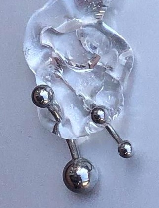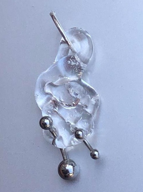 Transparent highly resistant borosilicate glass, with triple 100% steel piercing, and silver 925 hoop earring - the piece can be used as a necklace also, chain not included. Each piece is made by hand and is one of a kind, so shape may vary.