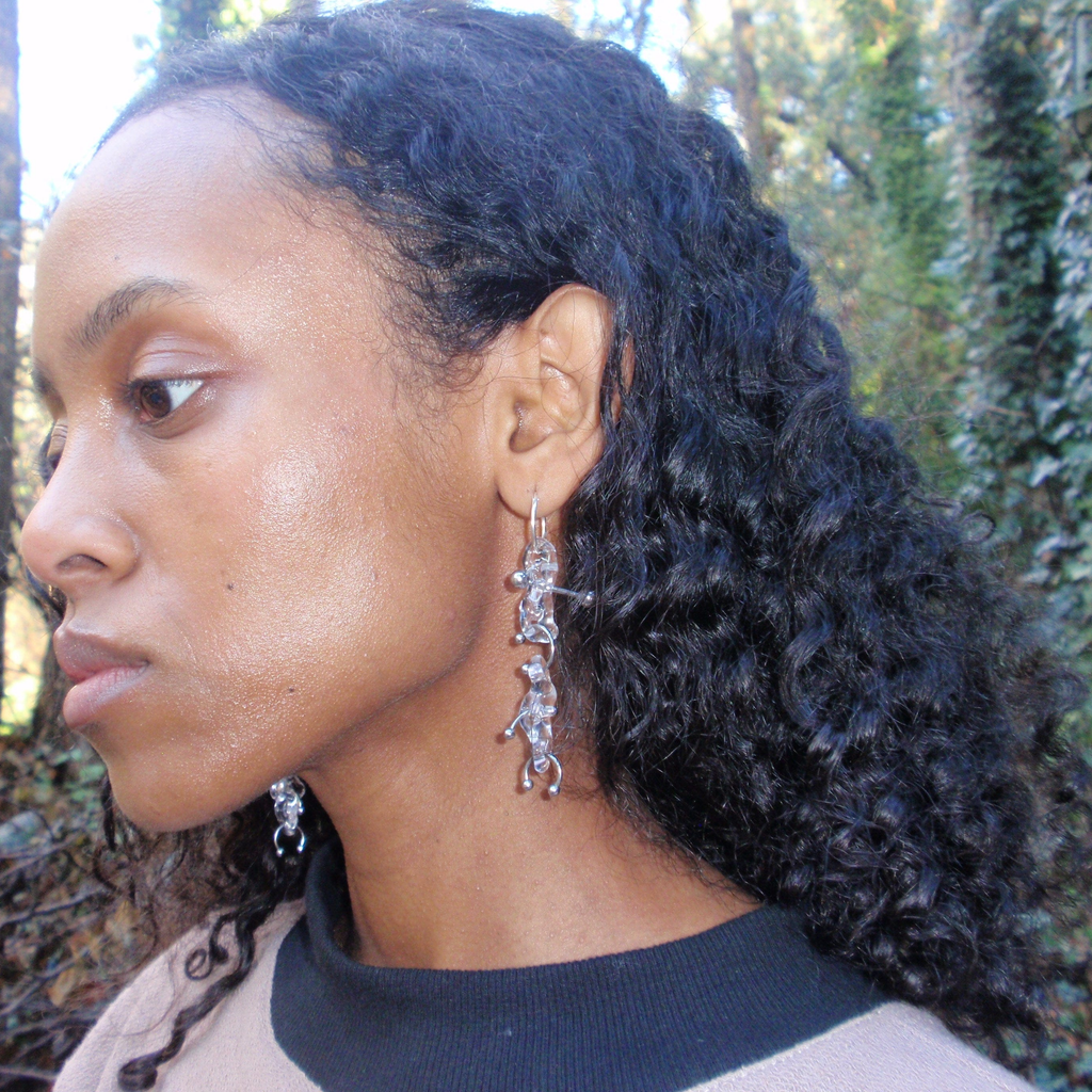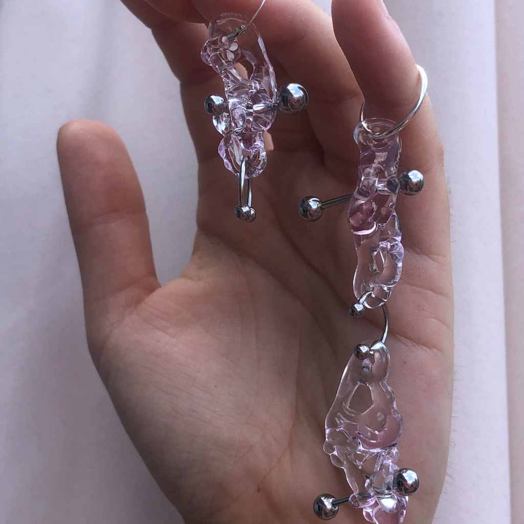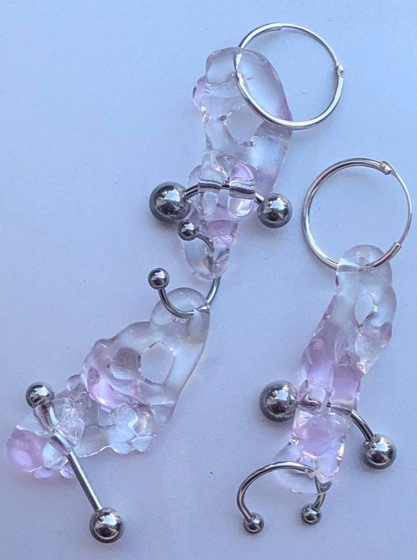 Transparent highly resistant borosilicate glass, with triple 100% steel piercing, and silver 925 hoop earring - the piece can be used as a necklace also, chain not included. Each piece is made by hand and is one of a kind, so shape may vary.