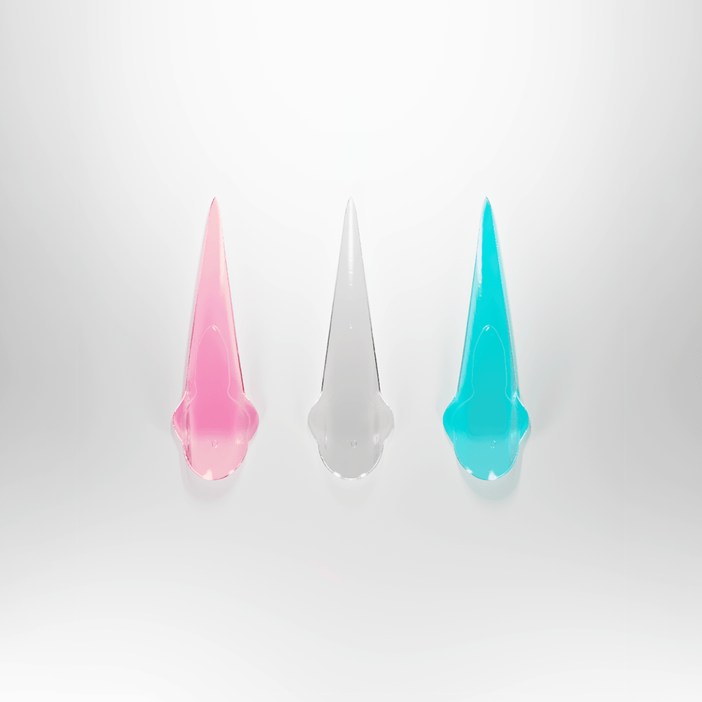 3d printed reusable nails by Texto Dallas. The Petals are a futuristic vision of the stilletto. When taking care of them, you can wear them forever.