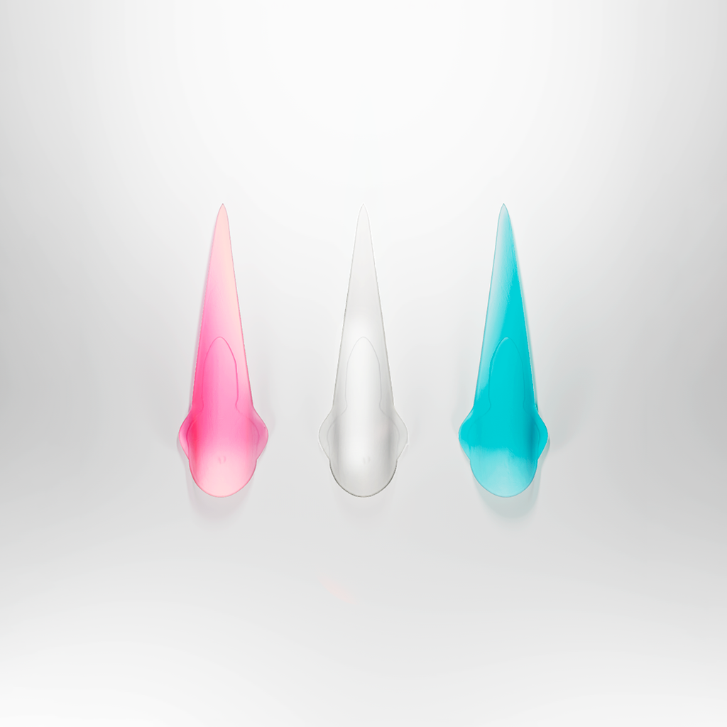 3d printed reusable nails by Texto Dallas. The Petals are a futuristic vision of the stilletto. When taking care of them, you can wear them forever.