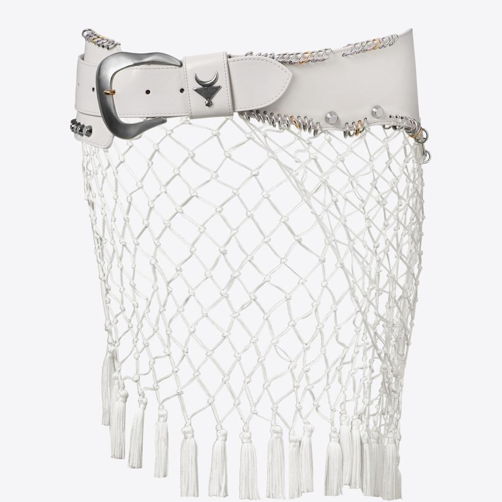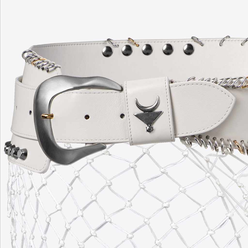 INAN was founded by Ilaria Norsa and Giulia Tavani, a jewellery designer from Angostura, who collaborated to produce an accessory line influenced by underground music, nightlife, and tribal-punk culture. This collection includes luxury jewel belts that serve multiple purposes and are adorned with studs, chains, and burnished brass details.