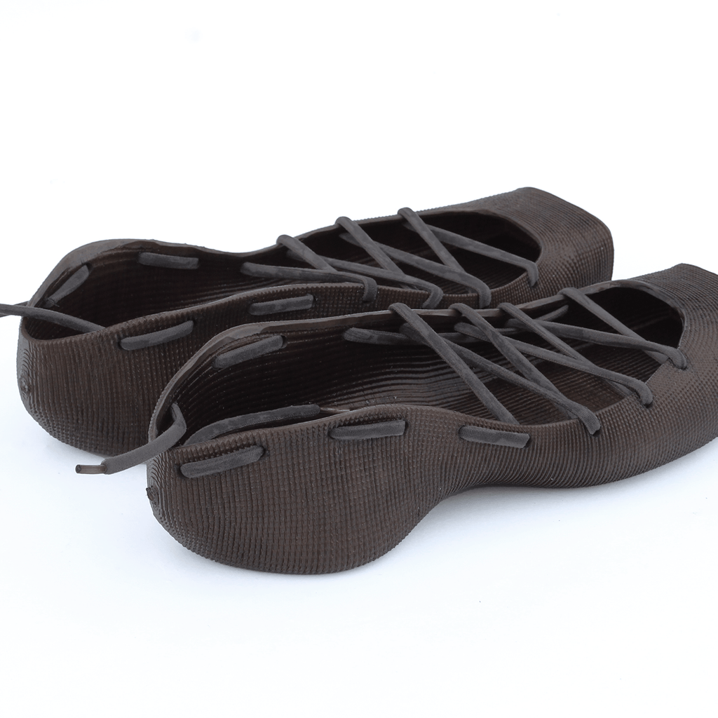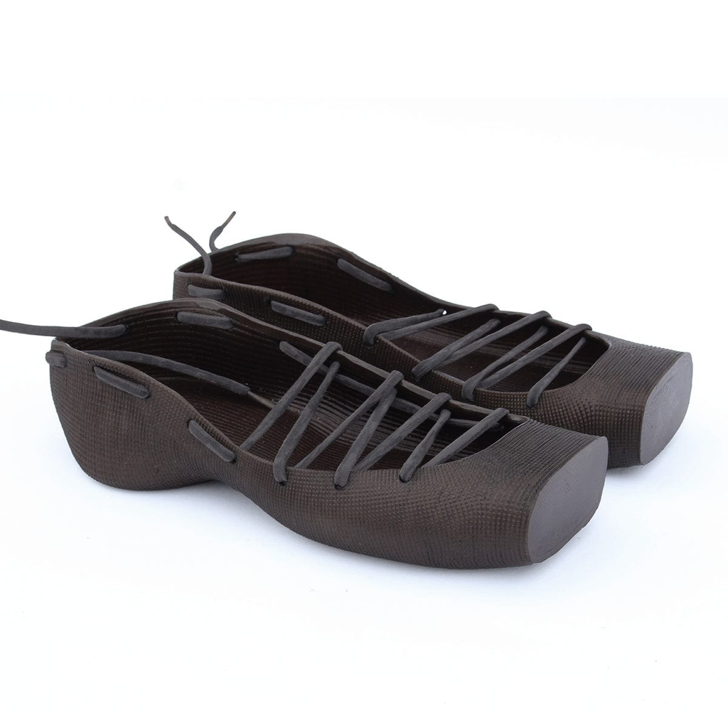 3D printed rubber mules. These mules are made entirely from a fully recyclable and highly flexible polyurethane rubber. They are hand-dyed with liquid dye. 3D printing reduces material usage when compared to traditional injection moulding. It is normal for printing results to not be entirely perfect. Small effects contribute to the aesthetic of the product and do not affect its functionality. Colour may vary from images due to the hand-dying process.