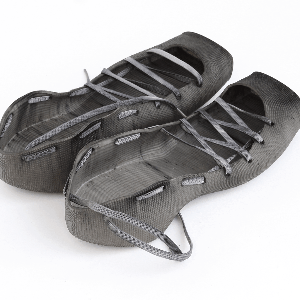 3D printed rubber mules. These mules are made entirely from a fully recyclable and highly flexible polyurethane rubber. They are hand-dyed with liquid dye. 3D printing reduces material usage when compared to traditional injection moulding. It is normal for printing results to not be entirely perfect. Small effects contribute to the aesthetic of the product and do not affect its functionality. Colour may vary from images due to the hand-dying process.