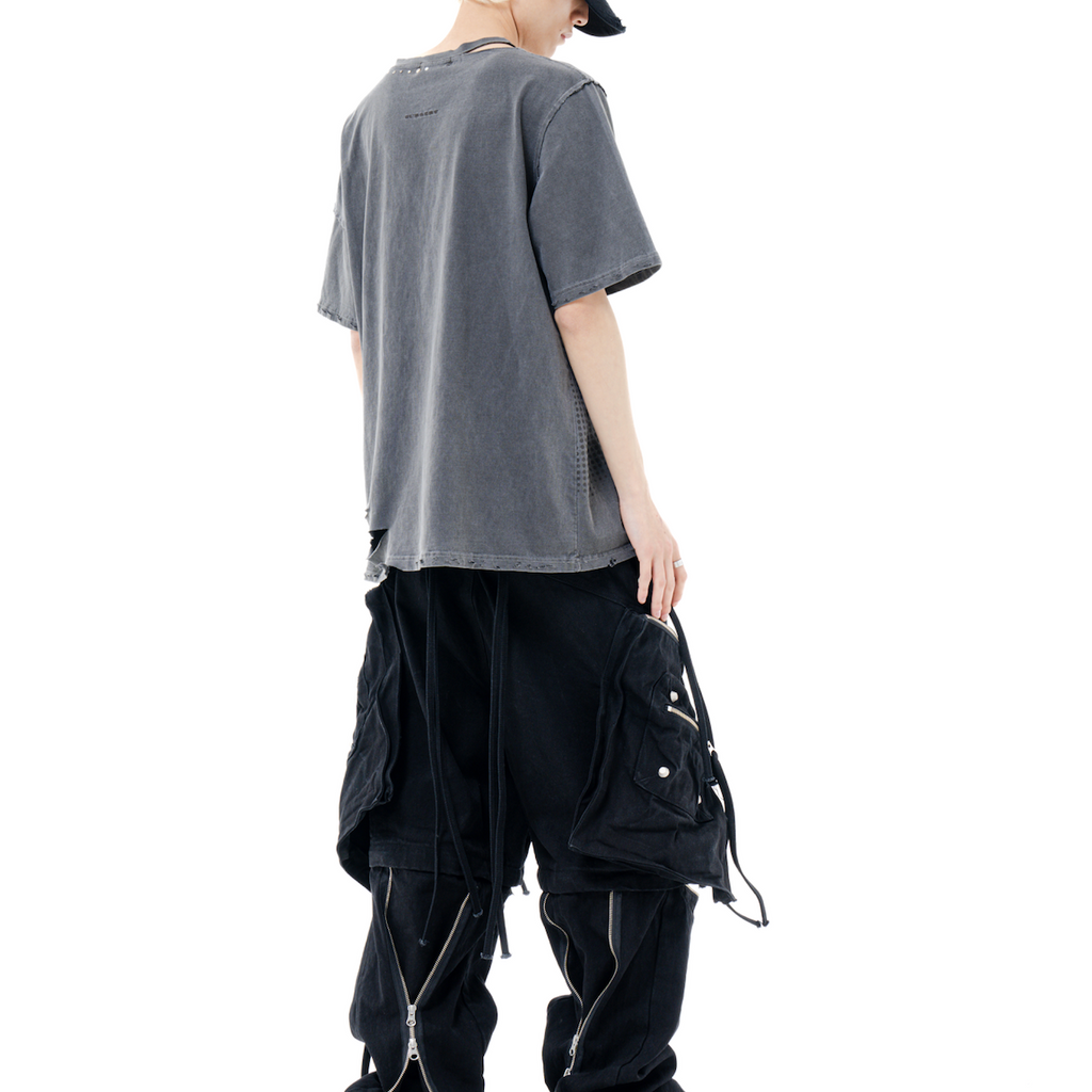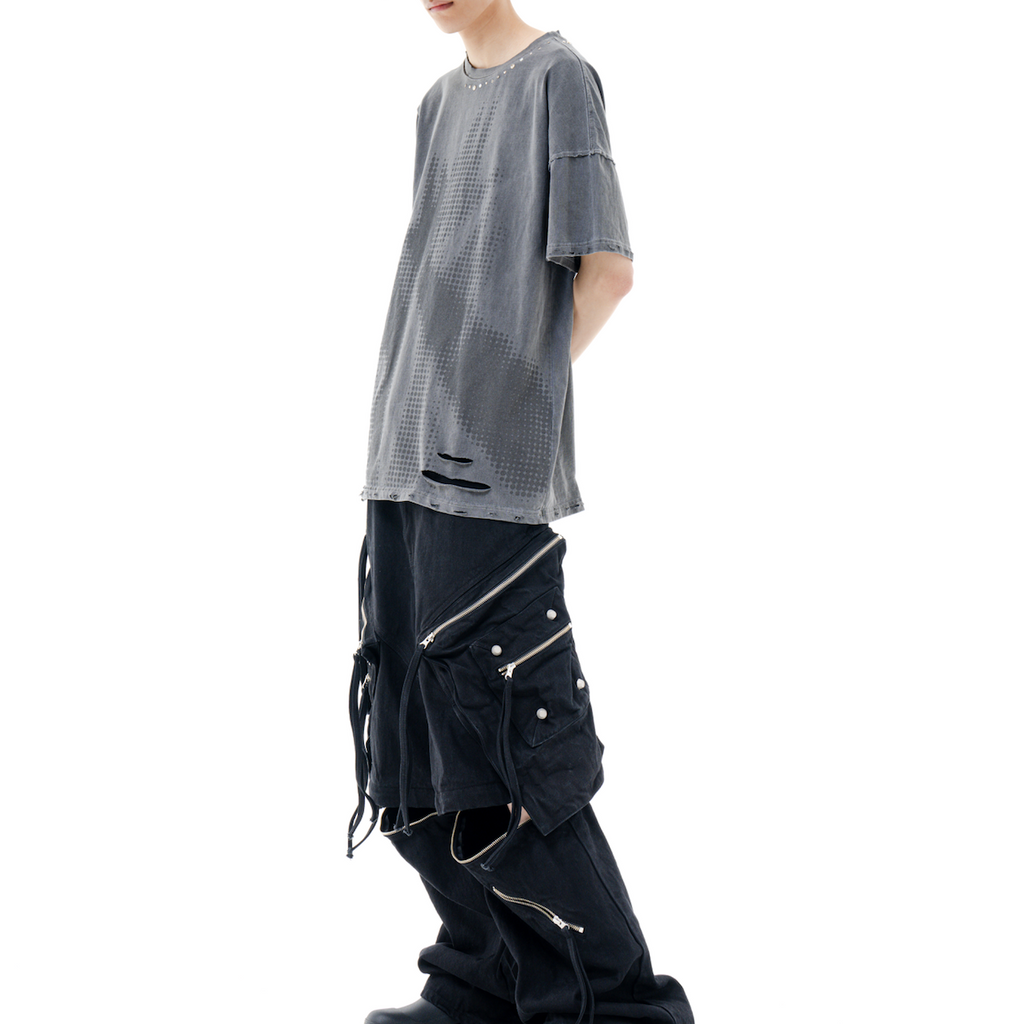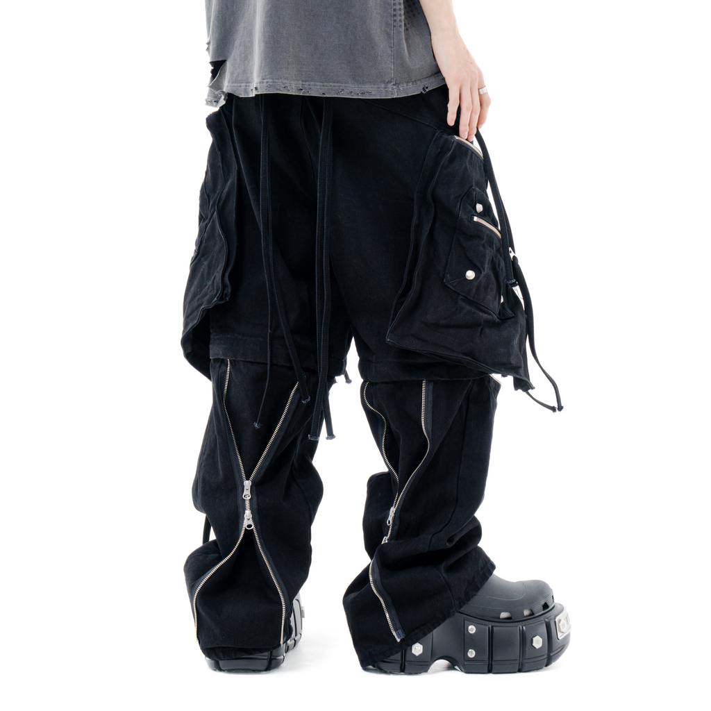 Upcycled. Cargo wide fit detail. Details that can be styled with shorts.