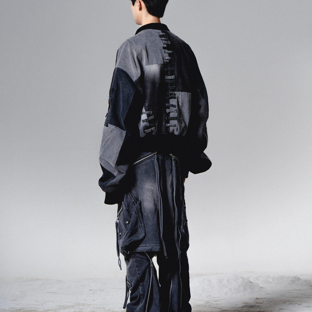 surgery biker embossing puffer jacket 'grey'