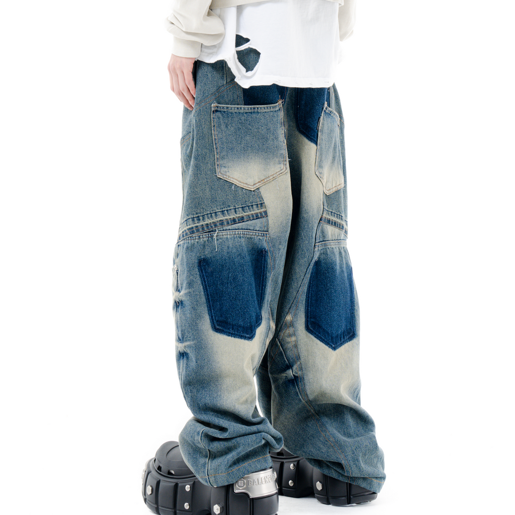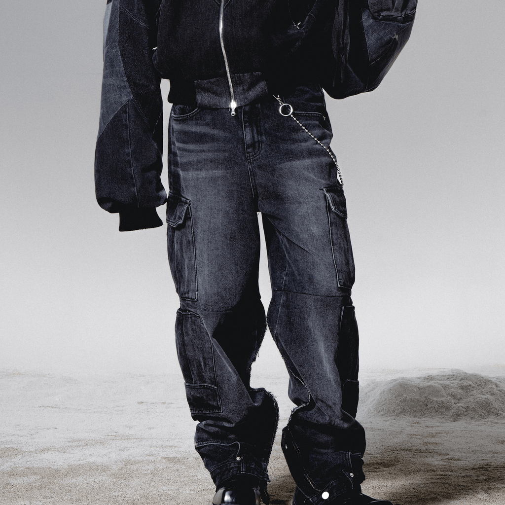 Upcycled. Cargo wide fit detail. Details that can be styled with shorts.