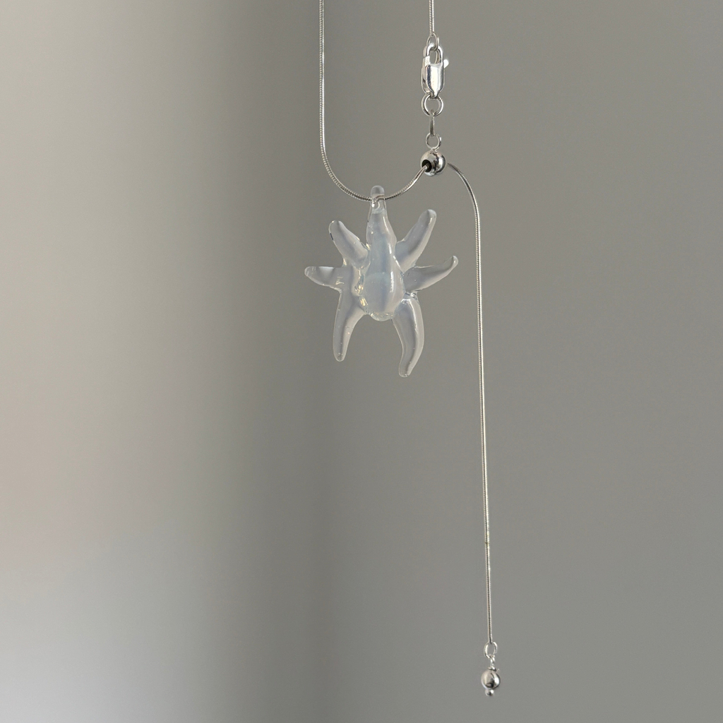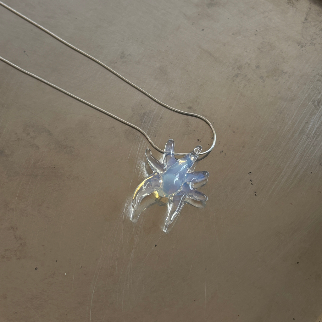 Adjustable silver chain. Glass piece: 3 × 3 cm aprox.